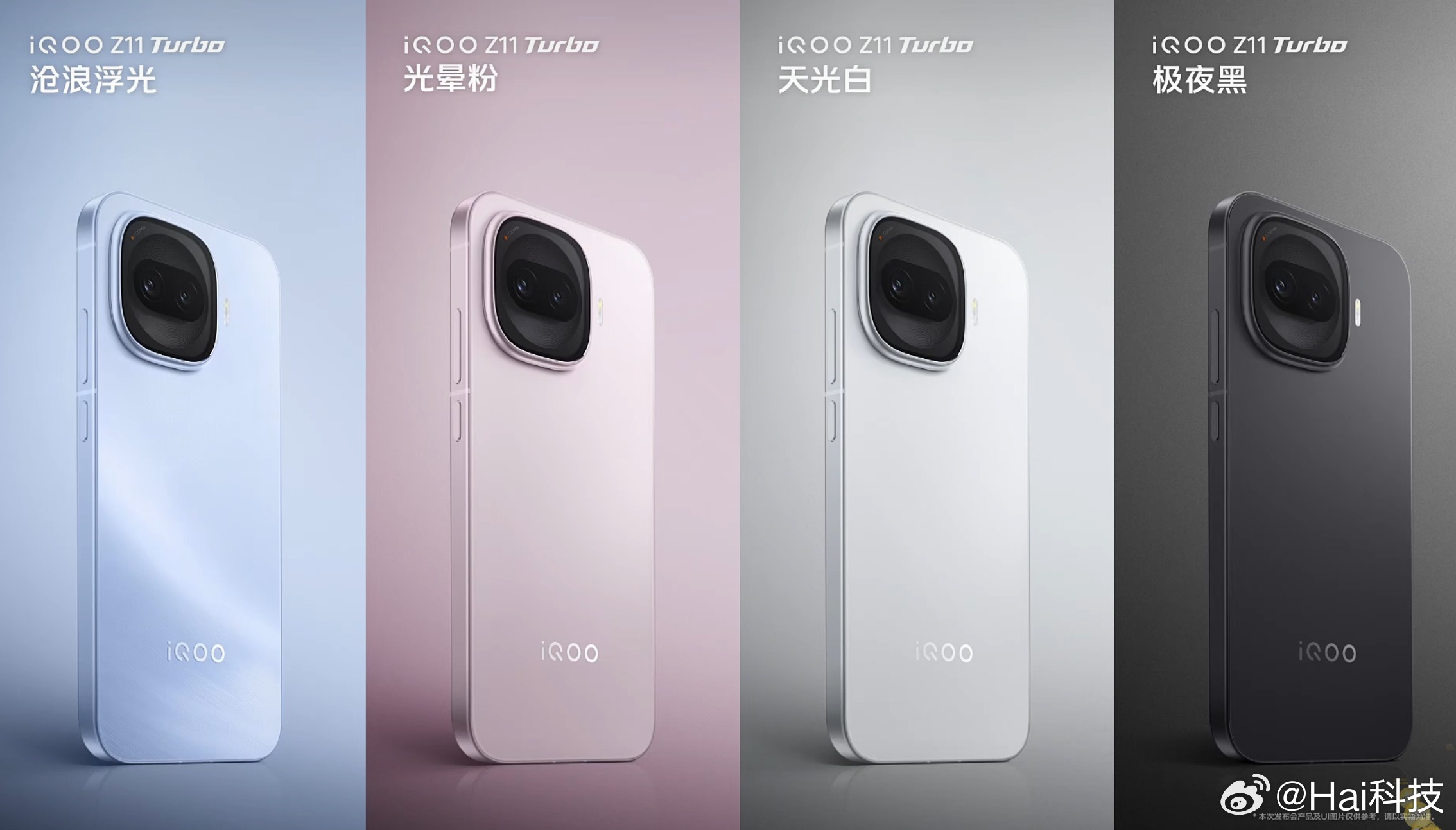 iQOO Z11 Turbo四款配色:沧浪浮光、光晕粉、天光白、极夜黑,磨砂玻璃背板+金属中框,镜头deco是机器之眼,质感大幅提升iQOO Z11 Turbo新品发布
