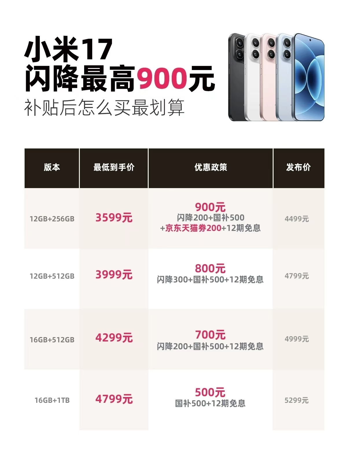 小米17官宣降价这么看补贴最合适的还是12+512这款,大内存不到四千块,现在这个内存的涨价幅度,过年之后的新机应该是再也没有这个价格了