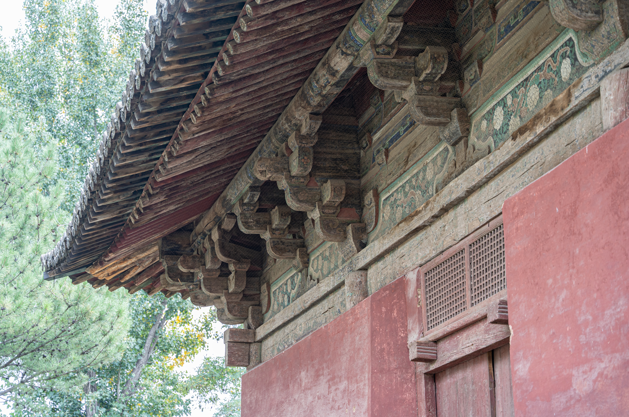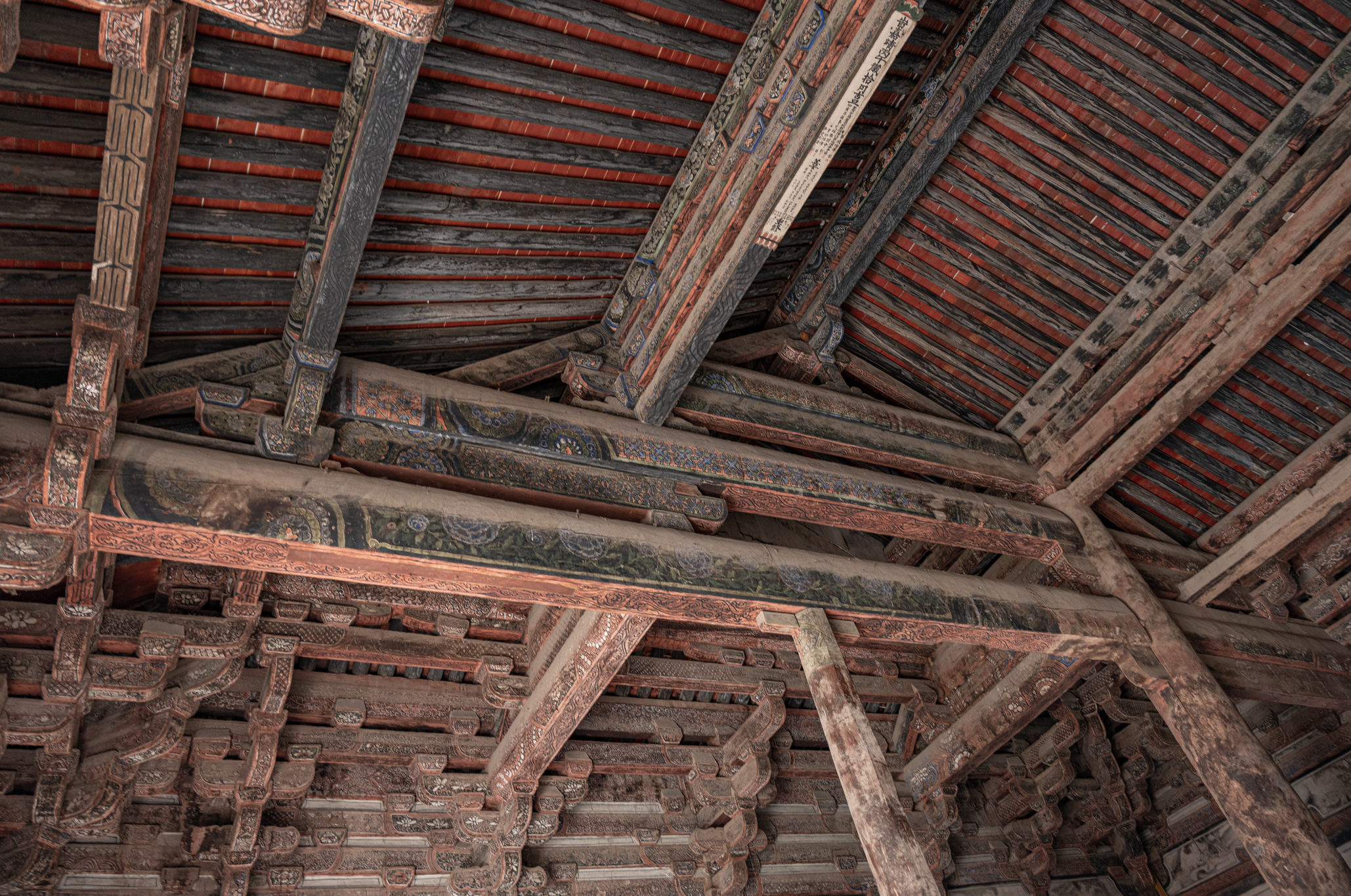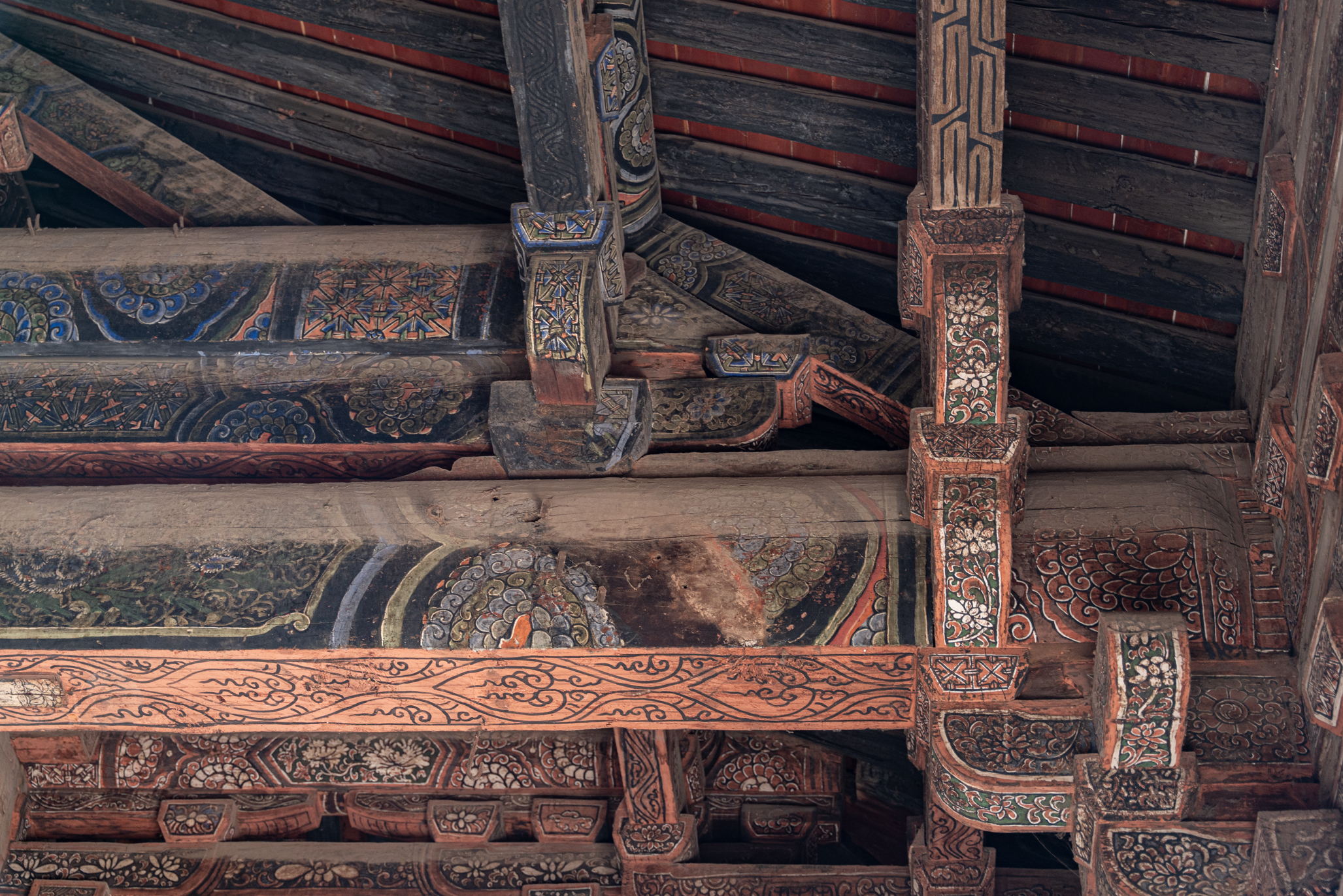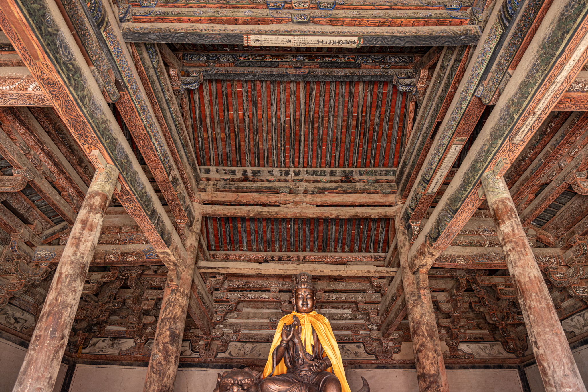 八大辽构之一--涞源阁院寺阁院寺文殊殿约建于辽代晚期,可能是现存辽代八座木构里最晚的一座。 在建筑结构层面,涞源阁院寺文殊殿等级不低,虽然面阔仅三间,但内部结构复杂且高级,堪称“微型巨人”,其内部结构做法与辽代巨殿如善化寺大殿、奉国寺大殿如出一辙,在横架方面用了多层叠梁,纵架又使用了大量叠枋,堆叠痕迹很重,室内甚至尽量不使用单栱或重栱,重视构架梁枋类构件的直接绞合衔接,斗栱里转传跳较多,转角铺作里转不用递角栿,而用补间和转角铺作里转的华栱层层传跳托起平槫交点,传跳多达五跳,做出富有变化的华丽的是观者进入殿内,视野立马会被华丽的结构塞满。 所以涞源阁院寺是一座用辽代大型殿宇的结构做法来设计小殿的一处案例,体现了建造者的财力。 在地理层面,阁院寺正好位于辽宋交界处,拒马河的源头,战略上十分重要,太行山北段的山间盆地中,周围群山环绕。向西沿唐河上溯几十公里是恒山与五台山之间的灵丘盆地,向东沿拒马河谷顺流而下百里则是华北的重要门户紫荆关,向北经著名的“飞狐陉”穿崇山峻岭百余里就是太行山后的蔚县盆地。 在宗教层面,阁院寺位于大五台山和小五台山之间,正好处于辽代文殊信仰的核心地带,辽代在辽景宗时期开始崇尚文殊信仰,辽圣宗时期开始兴盛,今河北省蔚县的小五台山,是辽代的五台山文殊信仰圣地——东五台山,辽代最高统治者常赴东五台山送供,进香,巡礼,东五台山成为辽代华严教学的中心。所以离蔚县小五台不远的阁院寺理所当然成了主要供奉文殊的一处寺院。 诸多重要因素叠加,也不难理解为何阁院寺规模小,但建造的如此高级。