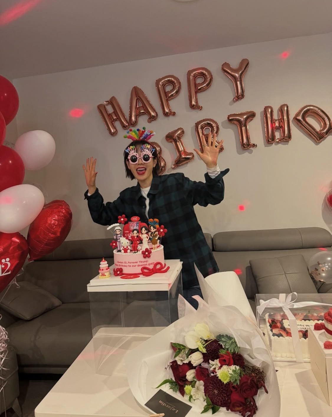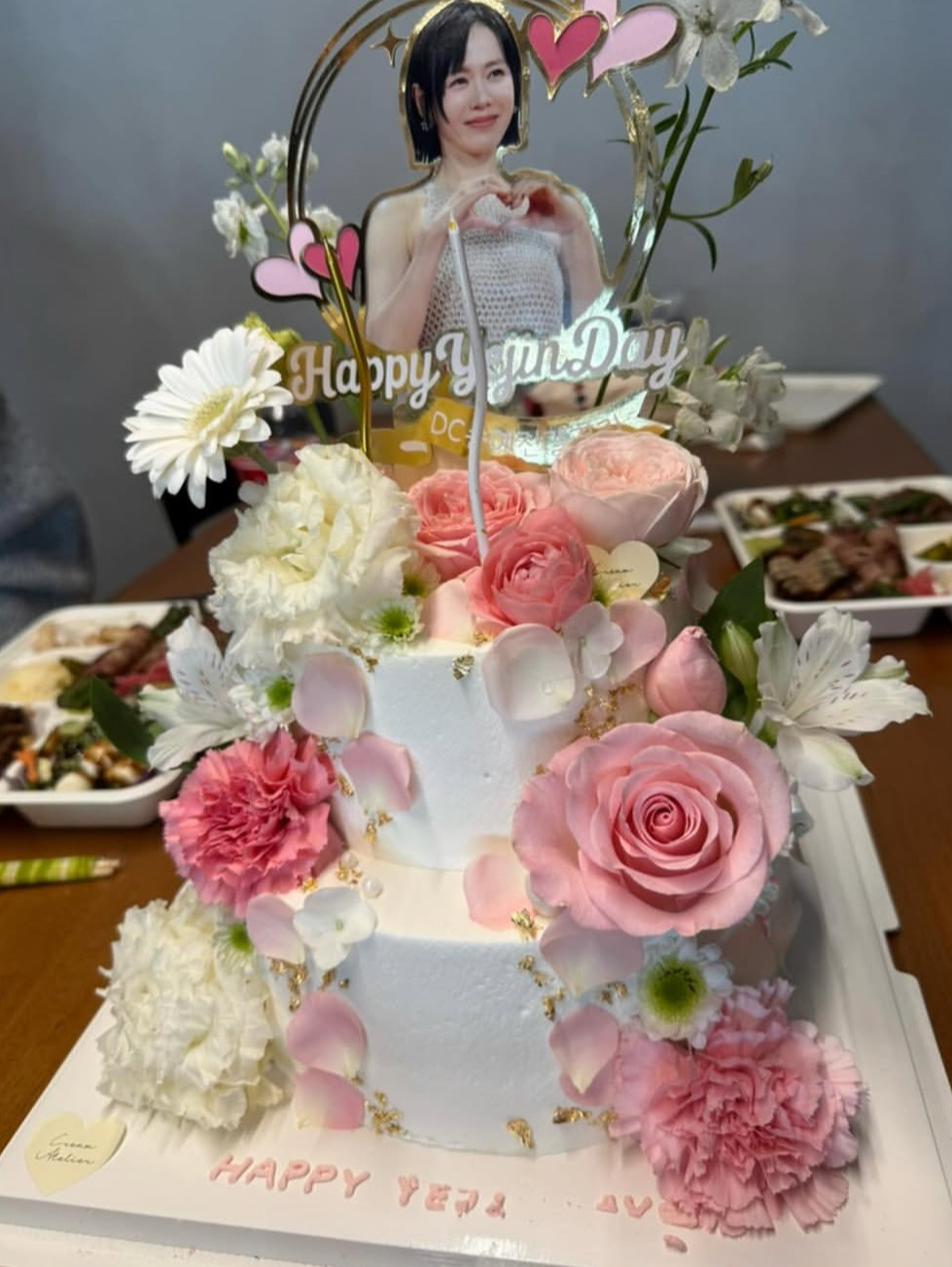 孙艺珍晒44岁庆生照,欧尼收到了很多花和蛋糕。