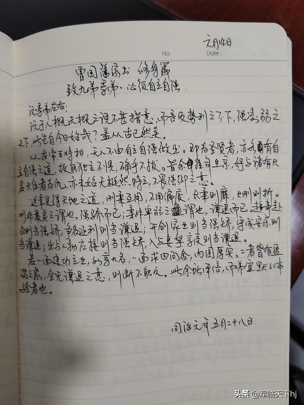 家庭共读并抄书第30天:《曾国藩家书》修身篇 致九弟季弟.做人须清廉谨慎勤劳(二