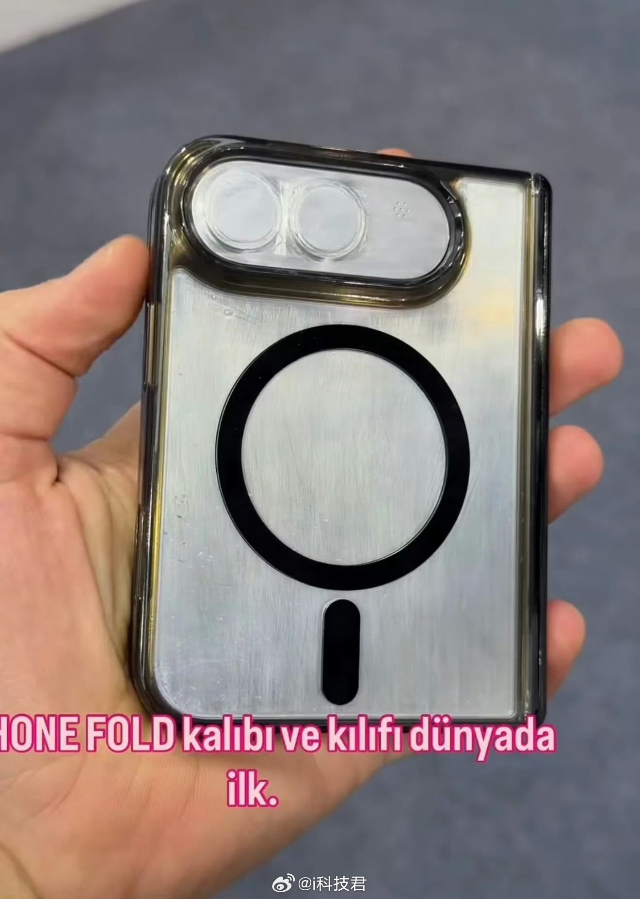 iPhoneFold保护壳模具曝光有点像Find N那样尺寸和比例,按照预计,iPhone首款折叠屏会在9月发布,但是屏幕还会有折痕,售价1.5万-2.2万?
