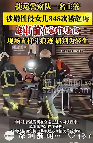 台北警察性侵女儿348次,庭审前“自杀”?这算盘打得真响! 讲真,这世界是不是疯了?以前觉得“警察”是安全的代名词,结果台北这起案子直接给我整吐了。披着一身警服,干的却是连畜生都不如的勾当!这哪是父亲,分明就是毒狼啊! 2010年,这小姑娘也就13岁啊,正是需要爸爸挡风遮雨的时候。结果她的亲爹一个在台北捷运警察队当主管的男人,却利用职务之便,把魔爪伸向了自己的骨肉。 348次!这个数字看得我头皮发麻!从13岁到20岁,整整7年啊!可最恶心🤢的是啥? 白天他是维护治安的“好警察”,晚上回家就变成了施暴的恶鬼👻。这种“双面人”的演技,奥斯卡都得欠他一座小金人奖! 直到女儿终于忍无可忍报警,证据确凿,检方直接求处重刑。眼看1月14日就要开庭受审,结果呢? 这男的怂了怕了,1月11日晚上在出租屋“自我了结”了。 呵呵死了,他倒是挺会算计啊! 一死百了,不用坐牢不用面对舆论。 可那个被他毁了一生的女儿呢?她的痛苦谁来买单?可恨实在太可恨了!😭 但同时这个案子也给咱们提了个醒:保护孩子,不能只防陌生人,更要防身边的“熟人”,因为熟人作案更是可恶可恨!未成年人强奸案 性侵案