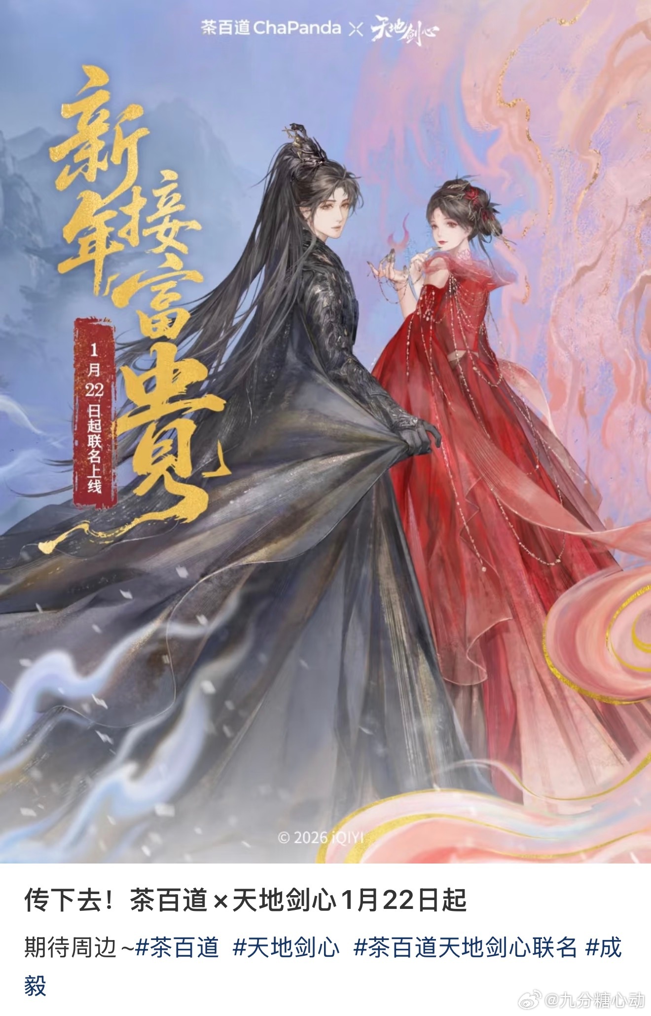 天地剑心天地剑心✖️茶百道联名来了1月22日上线!收官好久了还有联名,成毅的剧总是会有惊喜!商业价值太厉害了
