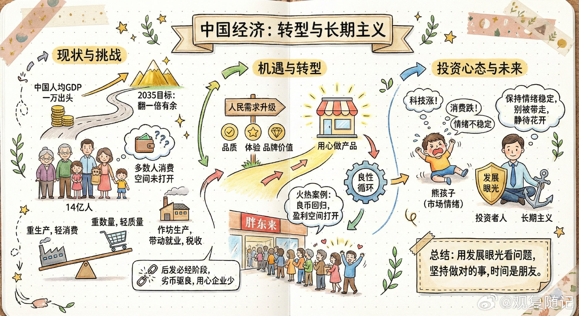现在中国人均GDP才一万出头,要达到2035的目标还要翻一倍有余。虽然目前人口结构问题很严重,但还是有14亿人,中国人均预期寿命79岁,上海84岁,即便不出台任何刺激生育政策,也要过很久才能看到人口总数大幅下降。这14亿中多数人的消费空间还没有被打开,多年以来我们重生产,轻消费,重数量,轻质量,这可能是后发工业化国家的必经阶段,毕竟作坊再小也是生产环节,也能带动就业,提供税收。这就造成了劣币驱良,用心做好产品的企业活的很挣扎。但是经济在不断发展,人民对产品的品质、体验、品牌价值的诉求越来越高,这就给 “用心做产品” 的企业打开了生存和盈利空间,胖东来的火热就是例子。用发展的眼光看问题,即便今年消费股依旧不涨,科技继续上涨也没什么大不了的,市场就是个情绪不稳定的熊孩子,在孩子闹的时候保持情绪稳定,别被他带着走,他慢慢会冷静。