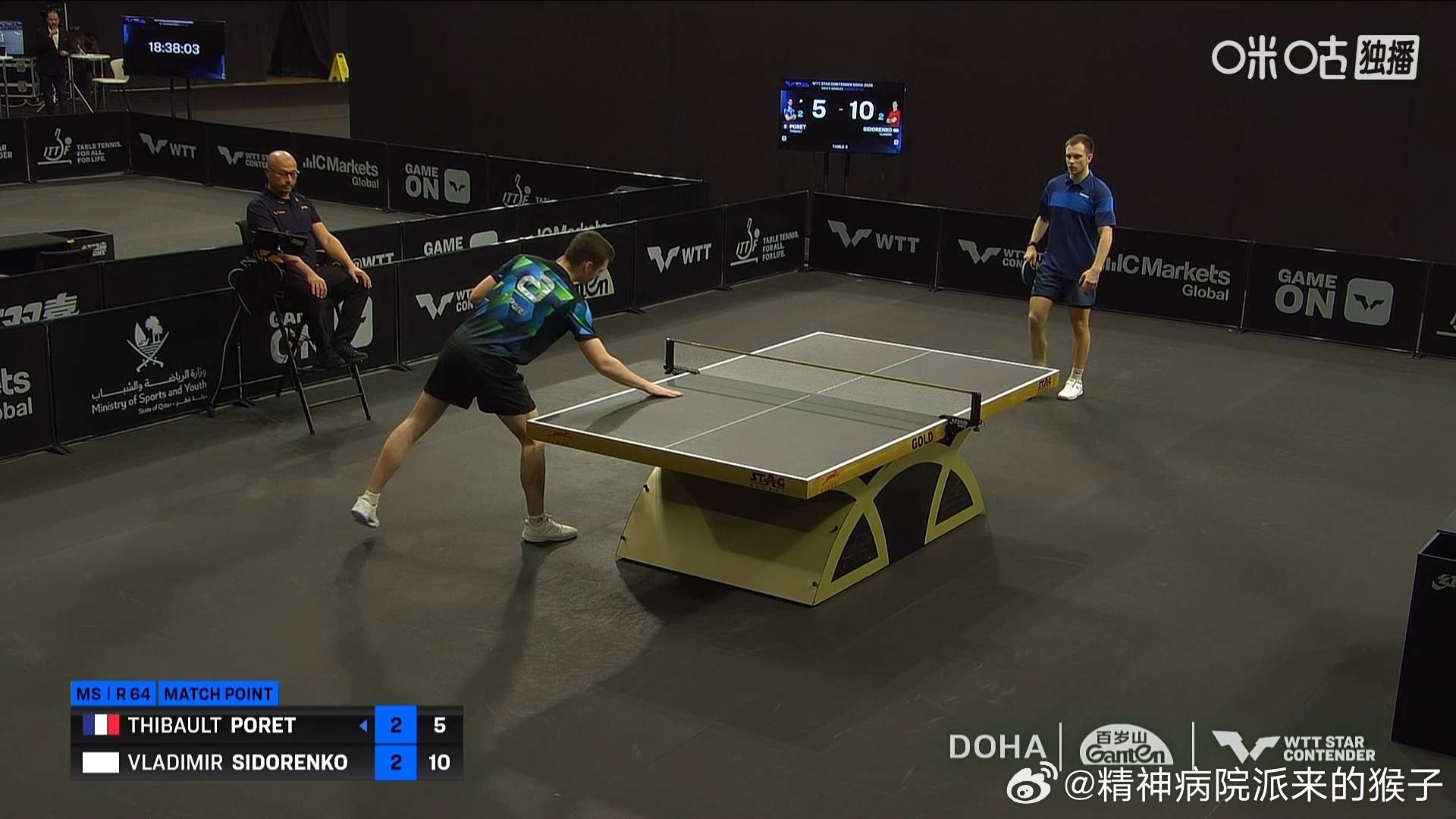 西多仁科3比2泊雷特(-4,10,9,-3,5)考夫蔓3比0艾希卡穆克吉(1,9,7)蔡昀恩3比1赫尔希(6,-7,9,4)晋级2026WTT多哈球星挑战赛单打三十二强下一轮:西多仁科🇷🇺(AIN)VS向鹏🇨🇳、考夫蔓🇩🇪VS申裕斌🇰🇷、蔡昀恩(中国台北)VS帕瓦德🇫🇷