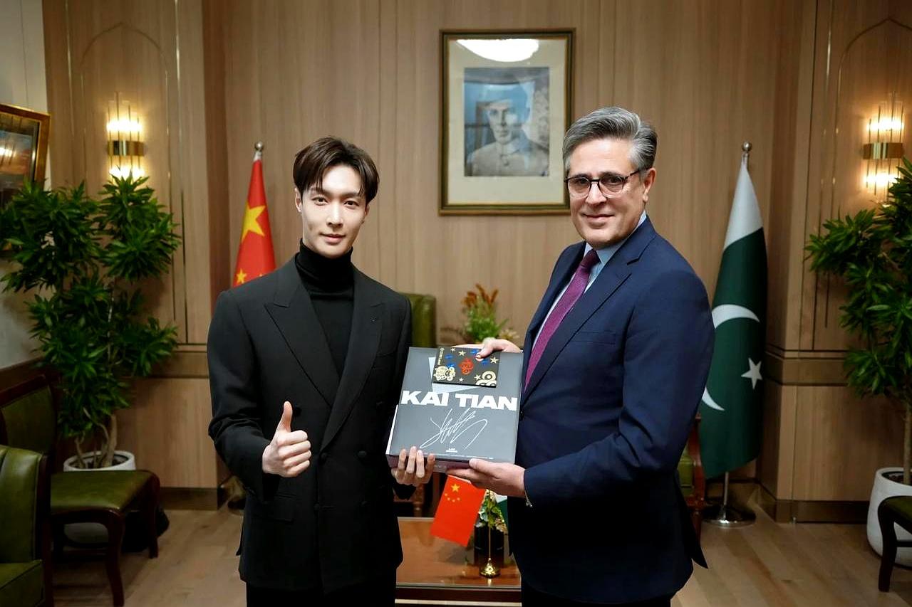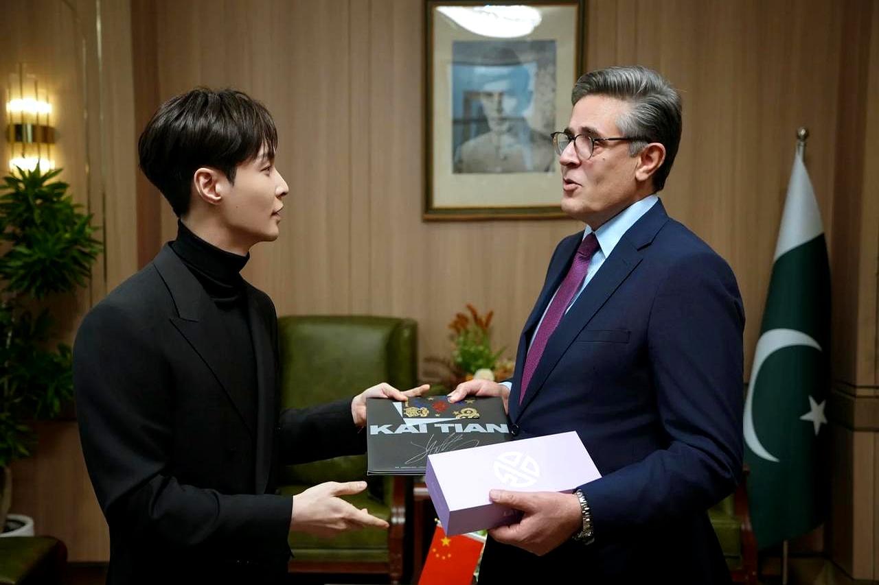 张艺兴英语开挂,竟是为中巴建交75周年埋梗? 评论区直接炸了:“这还是那个长沙小骄傲吗?” 1月13日,巴基斯坦驻华大使亲自接待张艺兴,合影坐姿优雅到像AI修图。 大使送官方画册,他反手递上原创《开天》,这波文化互换赢麻了。 关键爆点:全程英语freestyle,记者提问秒答,网友数他一共用了12个高级词汇,比六级听力还丝滑。 工作室放出幕后,原来他闭关啃英语三个月,就为这一刻“音乐外交”。 有人酸:“艺人而已,至于吗?”但看看热搜张艺兴中巴文化输出,阅读量飙到3亿,官方号集体下场打call。 这波啊,是把个人流量直接升级成国家好感度,翻车? 不存在的。
