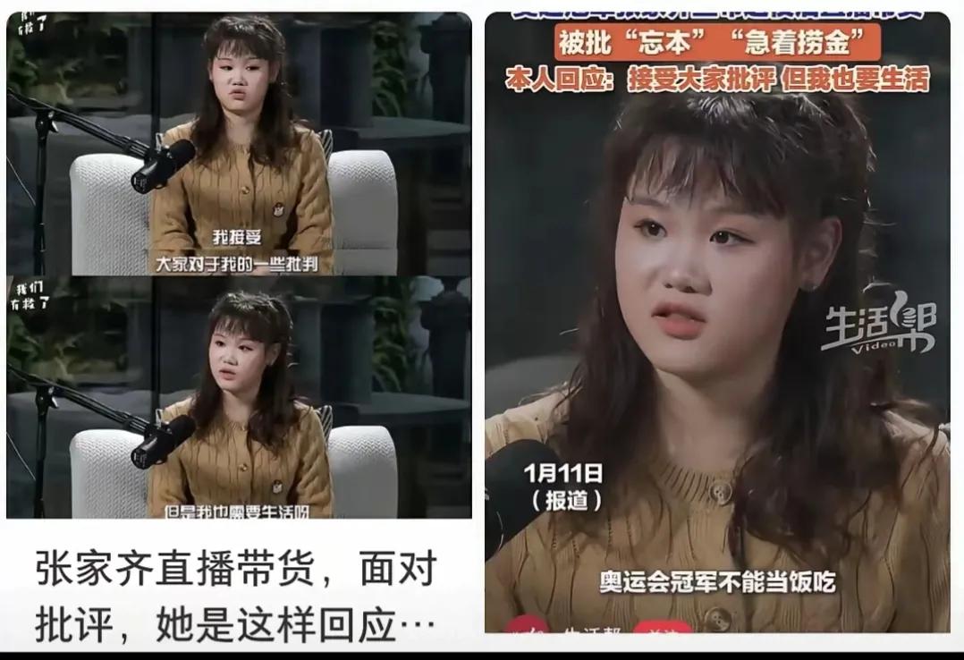 别理他们,一群歪嘴和尚能念什么好经。不但嘴歪,而且心术也不正 跳水运动员张家齐退役后,上直播间卖货上了热门话题。其实,这正常到不能再正常,正如她说的,冠军不能当饭吃,我也要生活。 退役运动员、特别是功勋运动员退役后的出路,一直在网上炒得沸沸扬扬,一直有群喷子在阴阳怪气带节奏。 混得好吧,象安排在政府部门就职或者入大学读书,他们会喷你占举国体制的便宜、花着纳税人的钱,谋的是自己个人的前程,一辈子躺在功劳簿上;又或者就凭运动成绩,享受特权,挤占广大寒窗苦读莘莘学子的学习资源。 混得不好吧,又喷体制问题,对为国争光、一身伤病的运动员没有照顾,漠视体育人才,令人心寒。 好了,现在自谋出路,人家不偷不抢,又不是违法乱纪,靠辛辛苦苦挣钱养家过自己的生活,又被喷这是忘本捞金。
