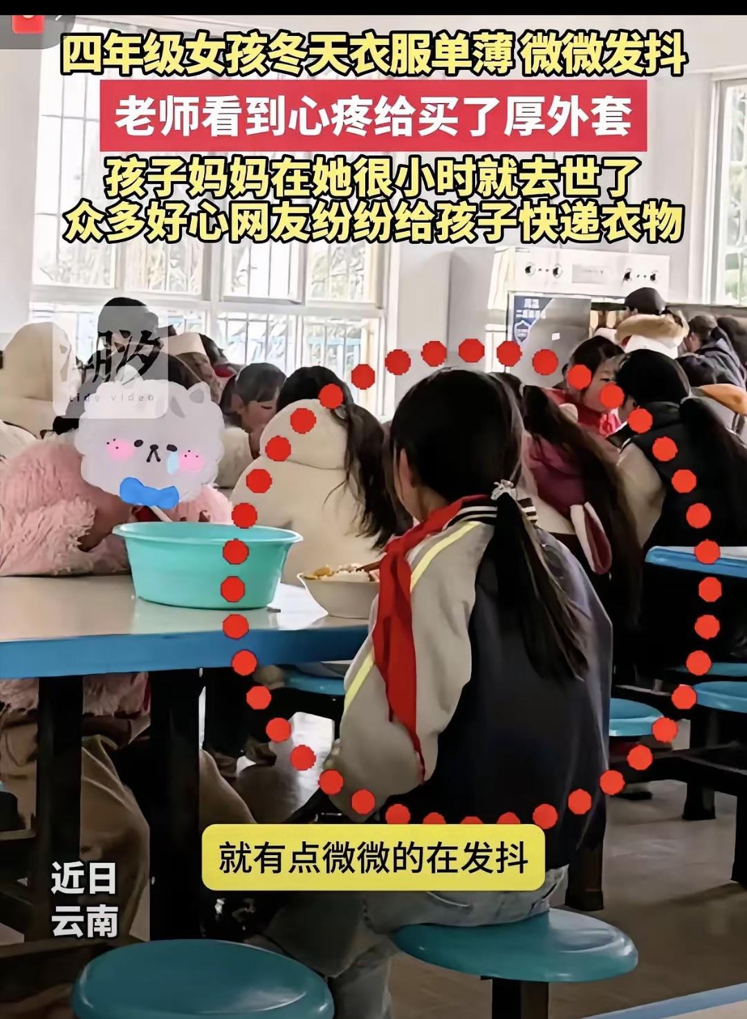 一件外套掀起的爱心潮,这才是互联网该有的样子 谁能想到,一件厚外套竟成了寒冬里最暖的光!云南一月的冷风多刺骨,四年级女孩穿着不防风的薄外套在食堂发抖,英语老师看在眼里,转身就自掏腰包给孩子添置了冬衣。本是随手发上网的日常,没想到竟点燃了一场全网爱心接力。网友们的包裹从四面八方涌来,衣服、鞋子、日用品堆成小山,还有人主动要资助孩子上学。更暖心的是,老师把多余物资分给了班里其他困难同学,让一份善意变成了满城温暖。 这哪是简单的捐物?分明是普通人的善意在互相传染。总有人说互联网太浮躁,可这件事偏偏证明,只要有一份温暖被看见,就能汇聚成照亮困境的星河。那些举手之劳的善意,从来都不是惊天动地的壮举,却能实实在在撑起孩子们的冬天。 你身边有没有这样暖到心窝的小事?快来评论区分享一下吧!