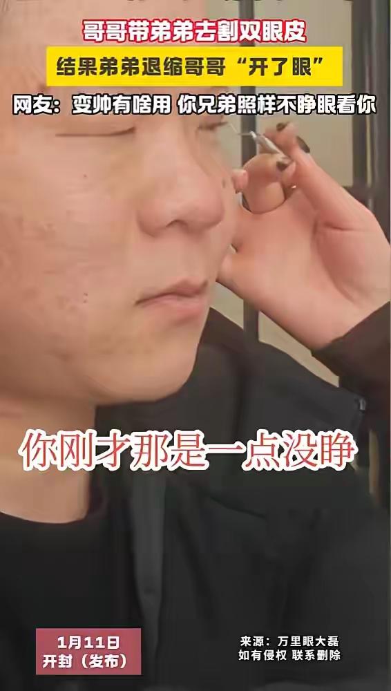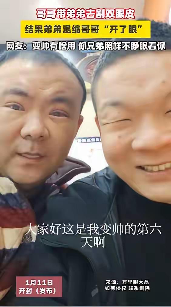 兄弟齐心变“帅哥”,开封男子勇敢割双眼皮,网友:你变帅了,但弟弟还是看不清你!