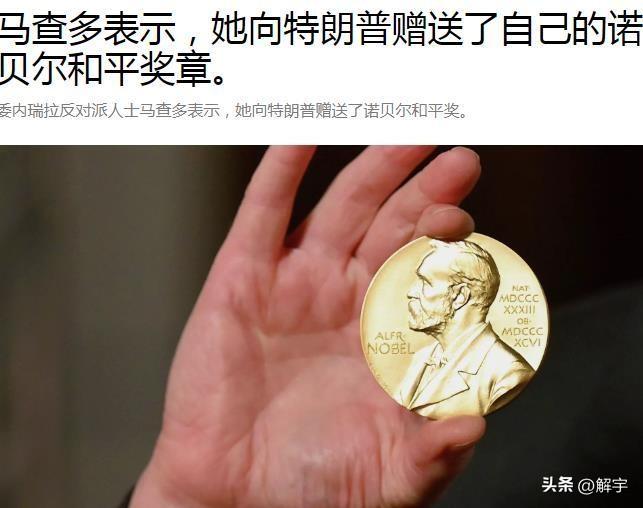 匪夷所思!特朗普获得诺贝尔和平奖奖章! 自上任美国总统以来,多次公开声称自己应该获得诺贝尔和平奖的特朗普终于在昨天如愿以偿,因为访问美国,与特朗普在白宫举行闭门会议的委内瑞拉反对派马查多将她于2025年获得的诺贝尔和平奖奖章赠送给了特朗普。也就是说,特朗普终于获得了他心心念念的诺贝尔和平奖!匪夷所思的是,向特朗普转赠诺贝尔和平奖的马查多,给出的理由竟然是特朗普攻击了她的祖国委内瑞拉!相信这世界上任何一个爱国者,听到马查多的这番言论和看到她向特朗普转赠诺贝尔和平奖的行为,都会义愤填膺吧!