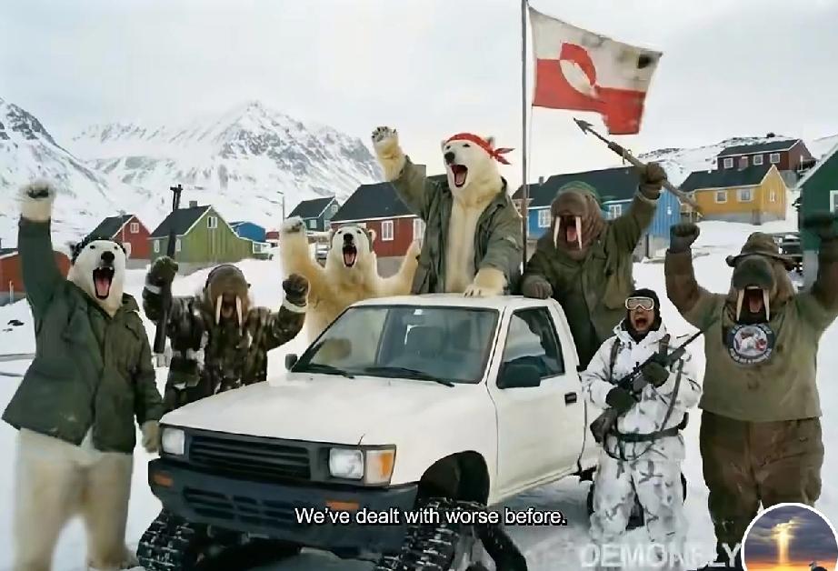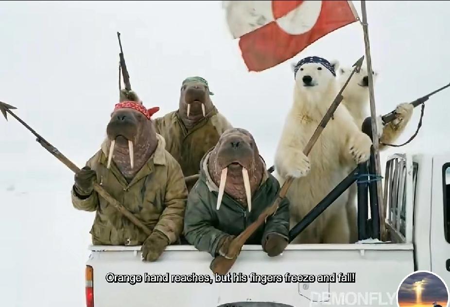 路边社消息: 格陵兰全体岛民已全面动员,众志成城,厉兵秣马,随时准备抗击外来入侵者! 如果特朗普真敢悍然入侵该岛,必将陷入人民战争的汪洋大海之中。 (有图为证,哈哈😄)