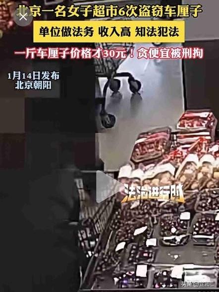 公司法务精英,超市里上演“车厘子消失术”,6次顺走车厘子终被刑拘。这世上的药有千千万,唯独没有后悔药这一种! 北京朝阳警方最近破获的一起超市盗窃案,让人直呼“魔幻”。因为案件的主角,竟然是一位天天和法律打交道的公司法务人员! 某超市老板小王说,元旦刚过,他总在超市角落发现车厘子空盒,调监控一看:有位女会员顾客专挑无人处,麻利地将整盒车厘子倒进自备购物袋,然后只拿着几样便宜商品去结账。 民警上门时,这位月入不低的法务女士还想装糊涂。直到民警亮出超市名字,她才慌忙询问后果的严重性。 多次盗窃的后果到底会有多严重? 按《刑法》规定,两年内盗窃3次以上就构成“多次盗窃”,不管偷的是车厘子还是钻石,都得按盗窃罪论处。她这“六连胜”,能有多严重可想而知。 更讽刺的是,她的盗窃生涯竟仅仅是因为一次“意外收获”。一个月前购物时,她发现有个商品没贴标签竟混出了超市。 从此,这位法律专业人士像打开了“新世界的大门”,就此潘多拉的魔盒彻底开启。 从第一次战战兢兢顺走小盒蓝莓,到后来熟练撕掉车厘子价签,再到散装干果、饼干通通“零元购”。 贪欲像雪球越滚越大,她唯独忘了自己每天打交道的法律法规。 最扎心的是价格:她冒险偷的车厘子才30+元一斤,而她的日薪可能够买十几斤。 被抓后她痛哭流涕,主动提出“十倍赔偿”求原谅,可惜法律不是超市促销,没有“满十赠一”。 网友辣评: “建议律所开新课:《刑事辩护实务——从被告人角度》!” “这下真成‘法制进行时’女主角了!” “超市应该给她颁奖:最佳刑法实践教学案例!” “她不是身穷,是心穷!” “这种人做法务真够讽刺的!” “必须严惩,知法犯法,罪加一等!” “馋,就打自己两个嘴巴子!” “学历高低和人品好坏没关系!” 目前该女子已被依法处理。 想想也真是唏嘘:每天帮公司审查合同风险的人,却看不透人生最大的风险就是心存侥幸。那些被她小心翼翼撕下的价格标签,终究变成了撕不掉的人生污点。 法律这碗饭,吃得稳的前提是自己别先砸了碗。 聪明用错了地方,知识反而成了讽刺。车厘子自由没实现,倒先把“人生自由”给打了个折上折。 素材来源:法治进行时、红星新闻,侵联删! 带定位晒今日生活 我的今日状态:💰期待暴富 我这里的天气:☀️晴天