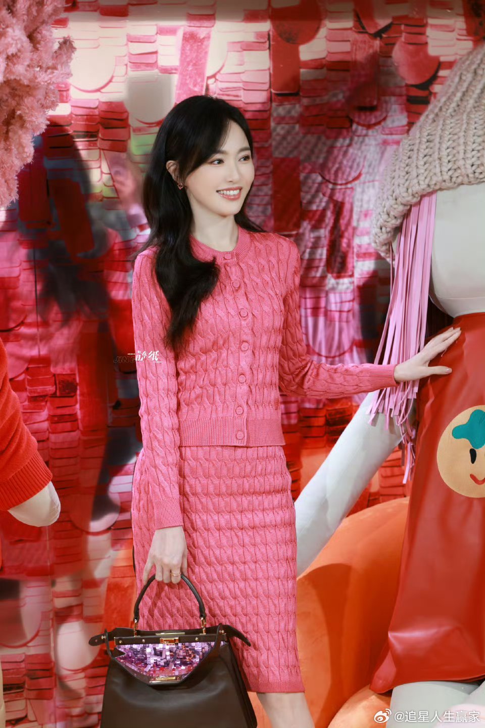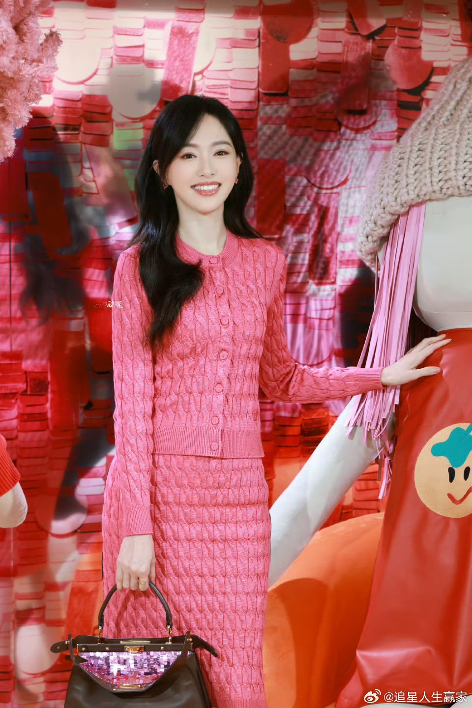 唐嫣粉裙 玫粉色这种高难度色系,她穿居然很好看