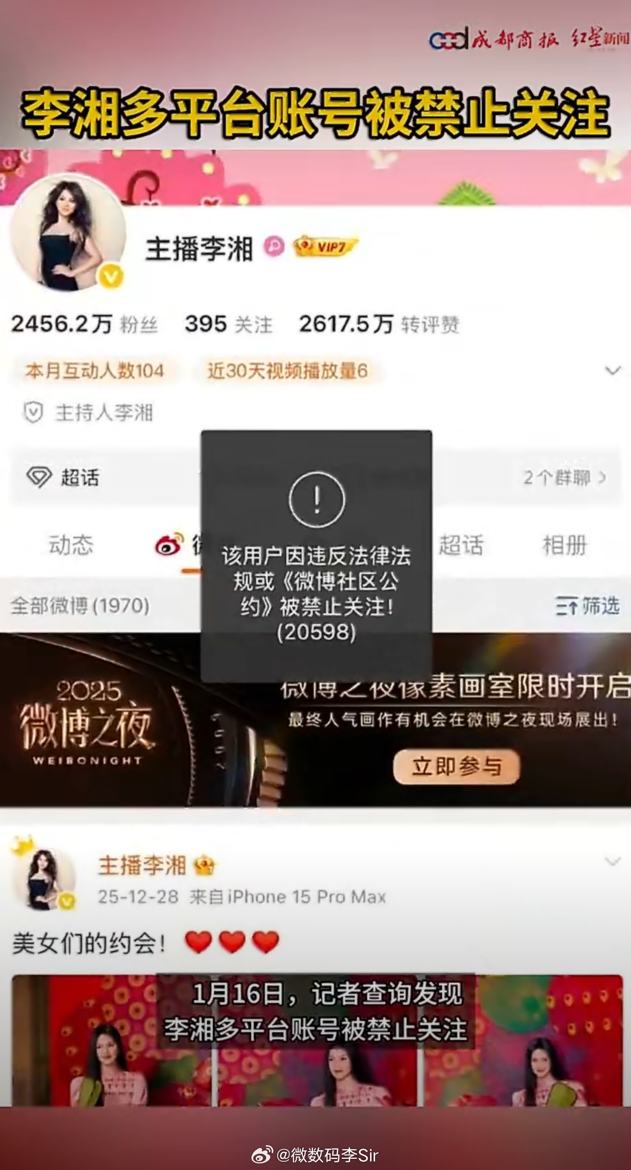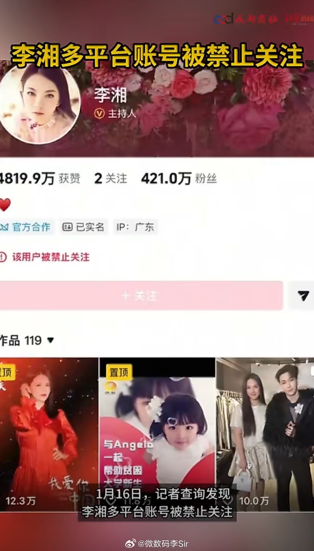 李湘全平台账号被禁止关注怎么个事?这也太突然了