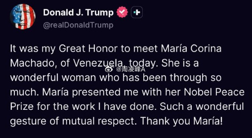 马查多把诺贝尔和平奖颁给特朗普我更认为马查多是在暗示川普对这个世界少点战乱