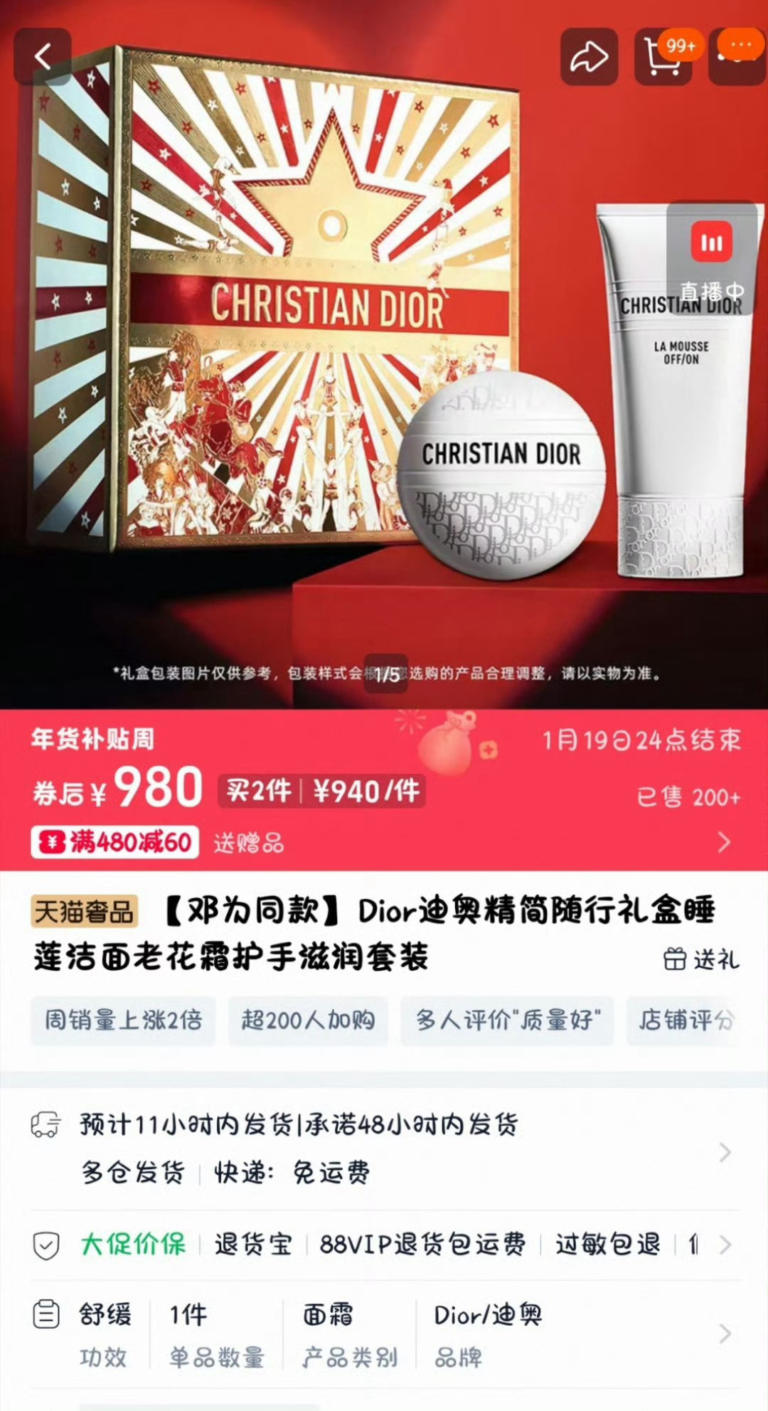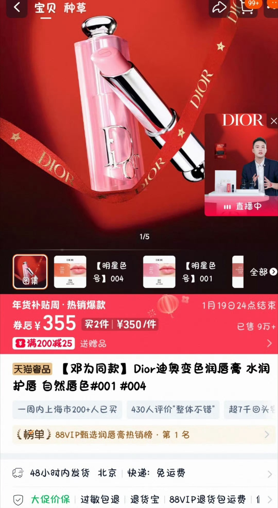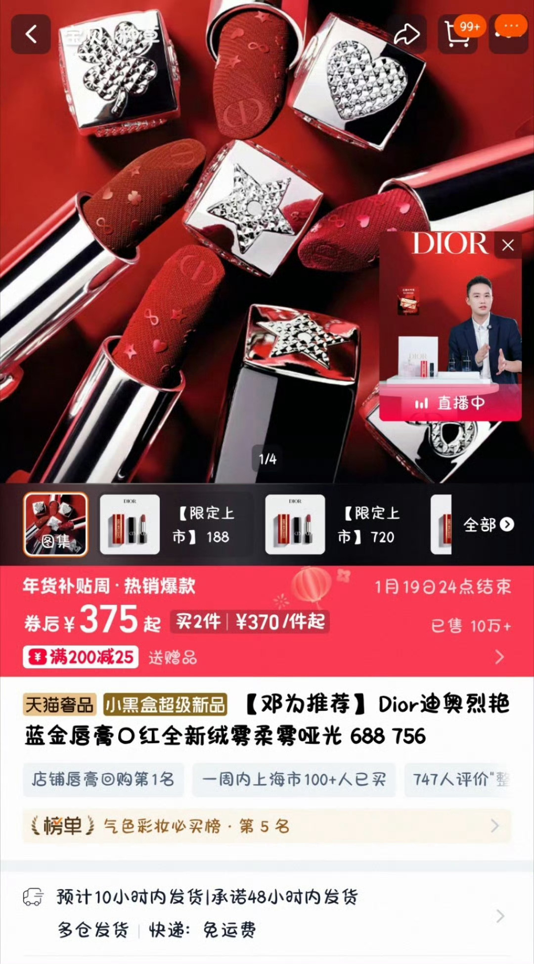 dior虽然大使很多,天猫官方店铺仅专属标注「邓为同款」,足以见得品牌重视和他的奢牌带货能力
