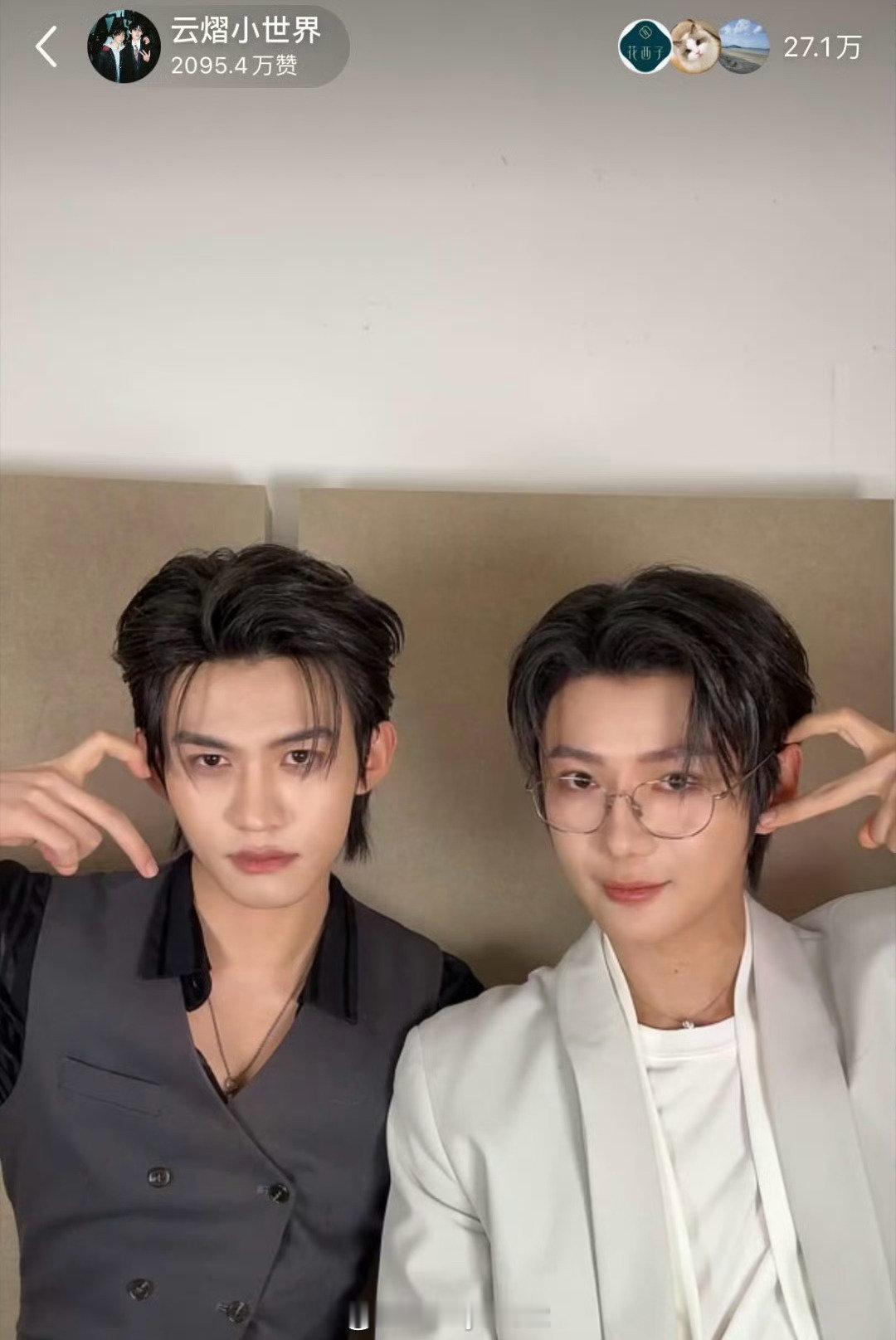云旗郝熠然红秀双人封面,10.0双人封面都来了!以防大家不知道两位新顶流长什么样,特此附上直播截图: