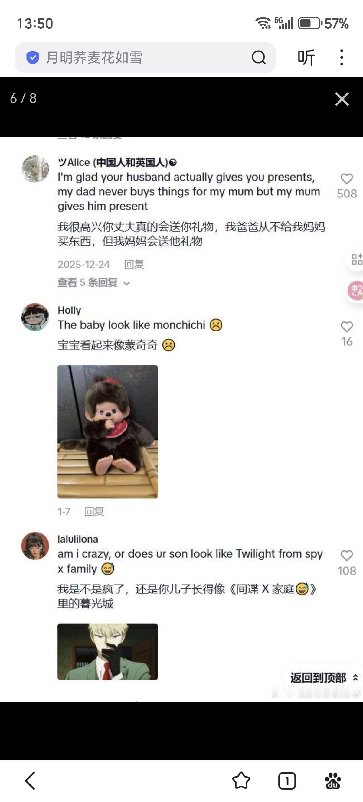 洋哆嗦音上面的新赛道:中国老公 应该很好懂吧?就是晒和中国老公的各种日常。晒中国好老公会做饭、会送礼、时不时有惊喜、温柔体贴……除了这些直白的赞美之外,还有不少中外文化冲突梗、伦理梗等等,但都透着一股子幸福的酸臭味儿。 而且都是洋妞在晒,中国老公配合出演。 评论里很多好羡慕,宝宝好漂亮,真希望我也找一个中国老公之类发言。也有人真心建议如何寻找一个中国老公,包括但不限于主动搭话(因为中国男人开始都相对腼腆)、直白示好等等。 以及—— 洋妞各种讽刺白男抠搜、没有责任心、自私、只会说漂亮话……总之就是国内某些言论的完整外国硬盘版。 挺好的,各取所需的话,也算是大家都有美好的未来不是吗?