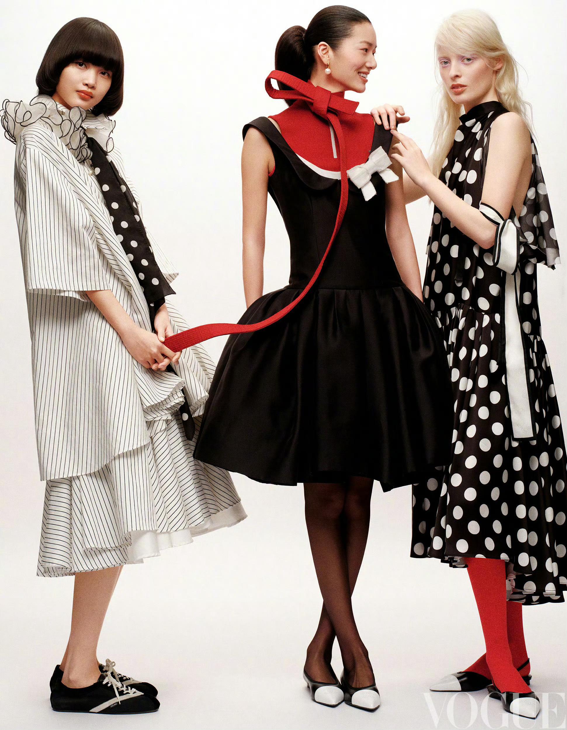 精心包裹好礼物,系上丝缎蝴蝶结,当被拆开的一瞬,惊喜即时传达,祝福浸润于心。VOGUE一月号摄影:CHARLES造型:ZHAOHAI化妆:Beata发型:Jiasu模特:李秋月、陈彤彤、Polly
