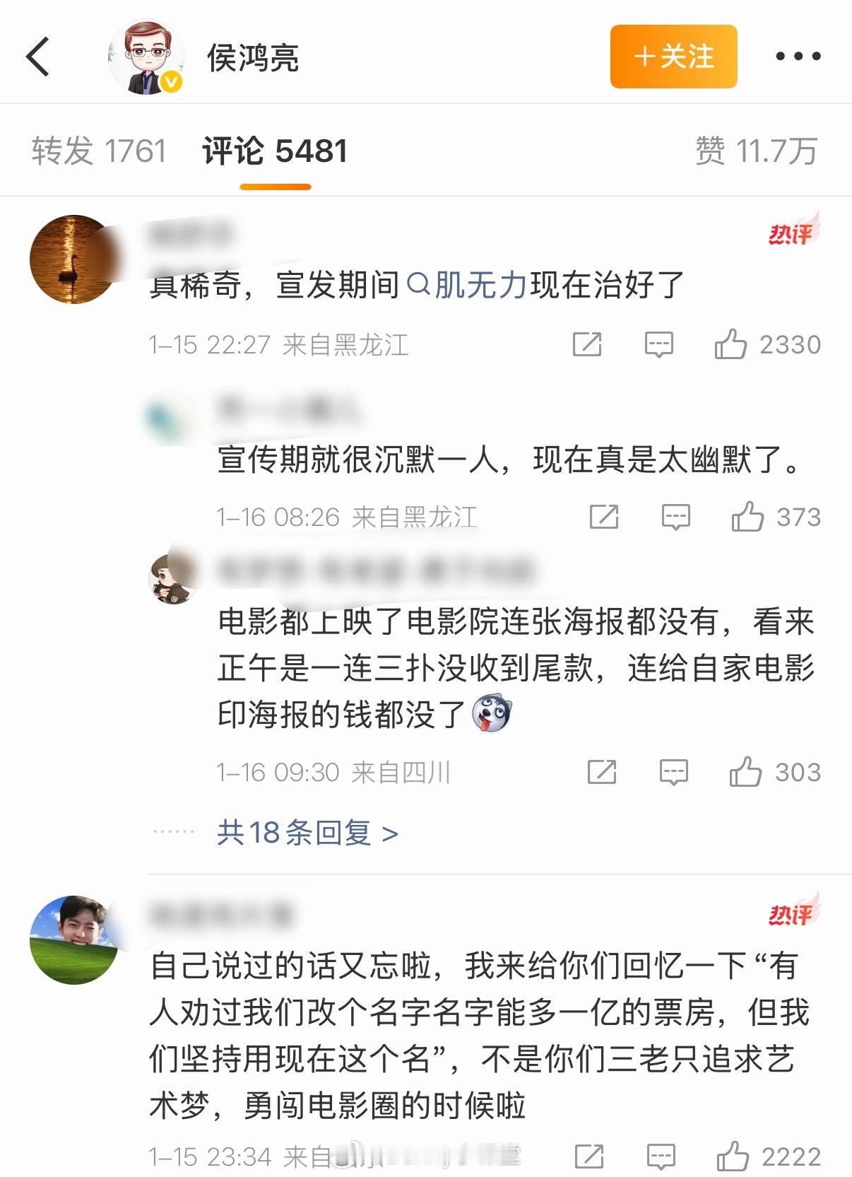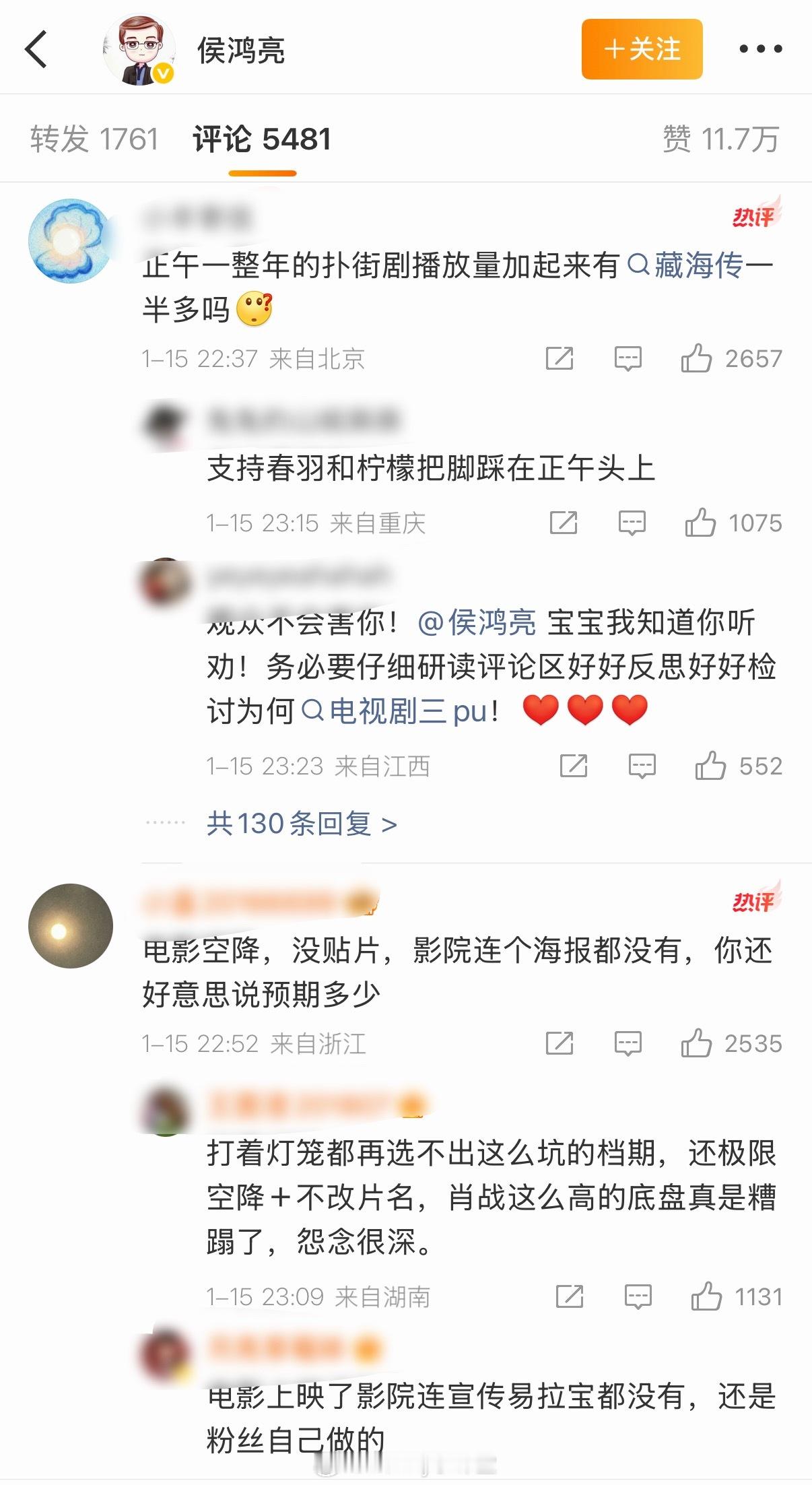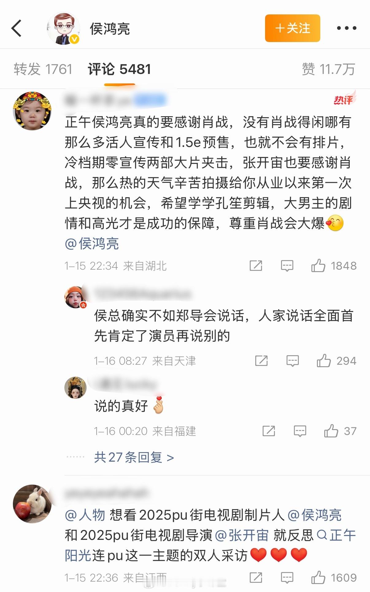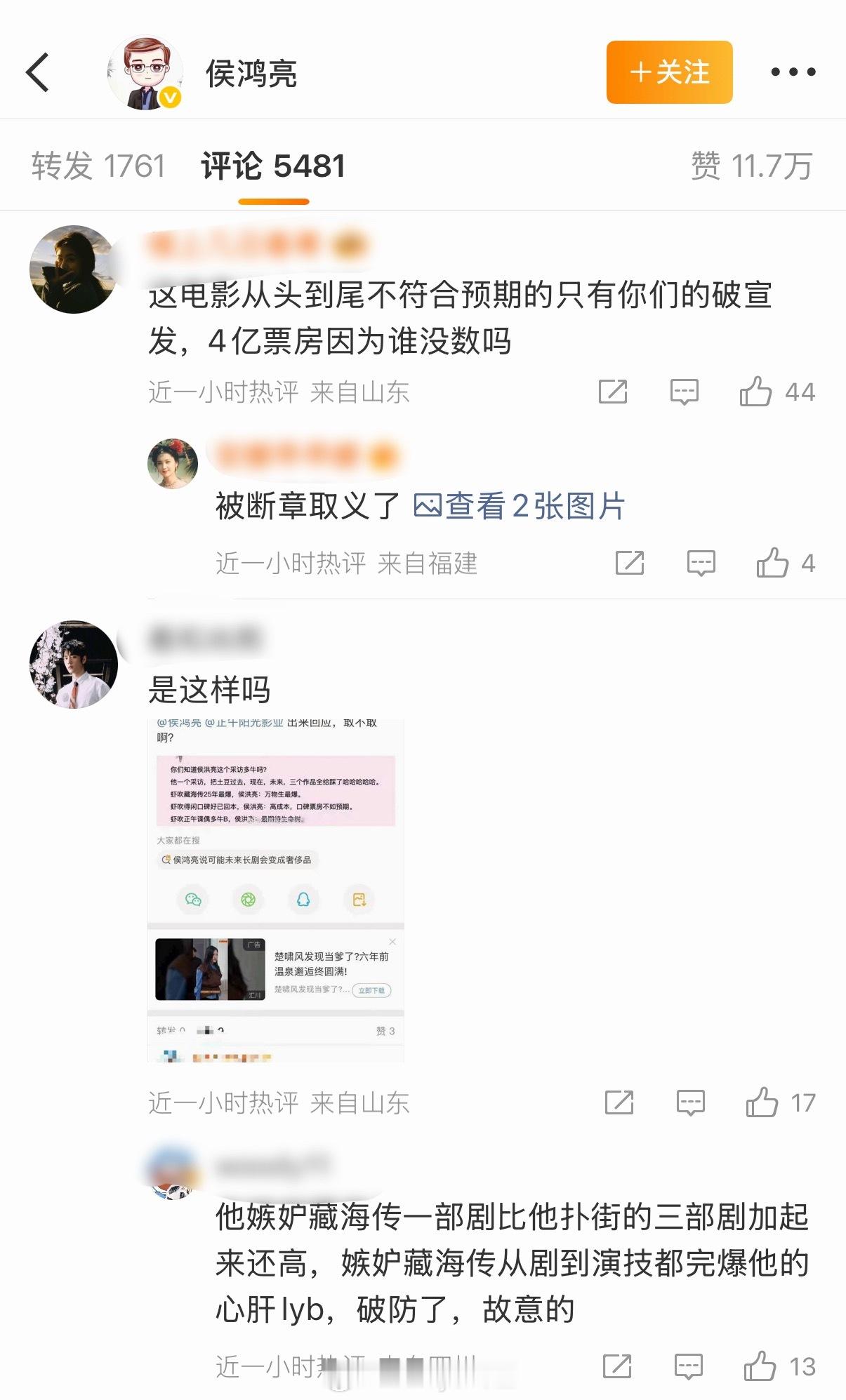 侯鸿亮微博评论区被肖战粉丝冲了,发生了什么