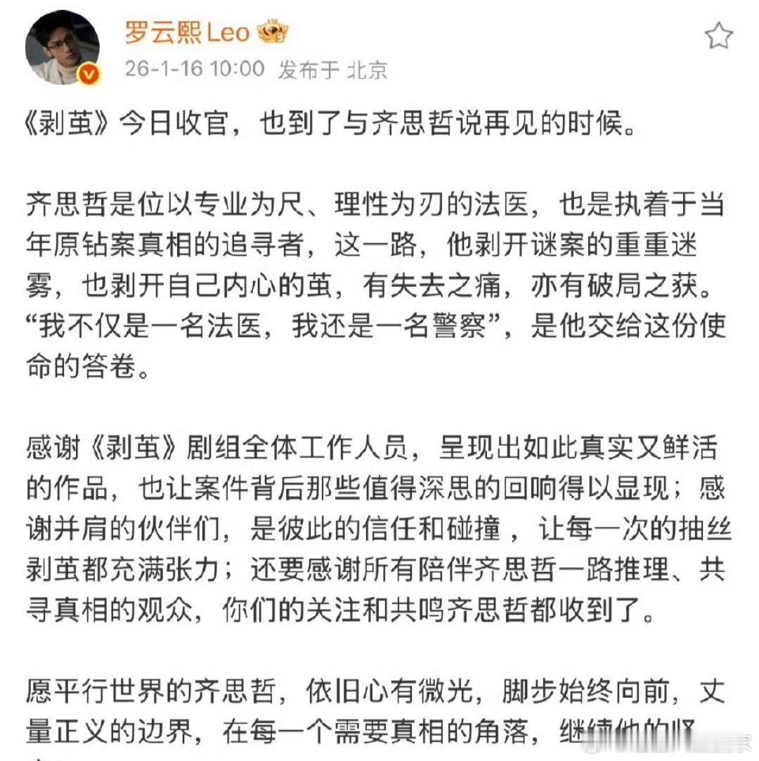 罗云熙剥茧收官啦人生角色加一1️⃣ 罗云熙演的也太好了