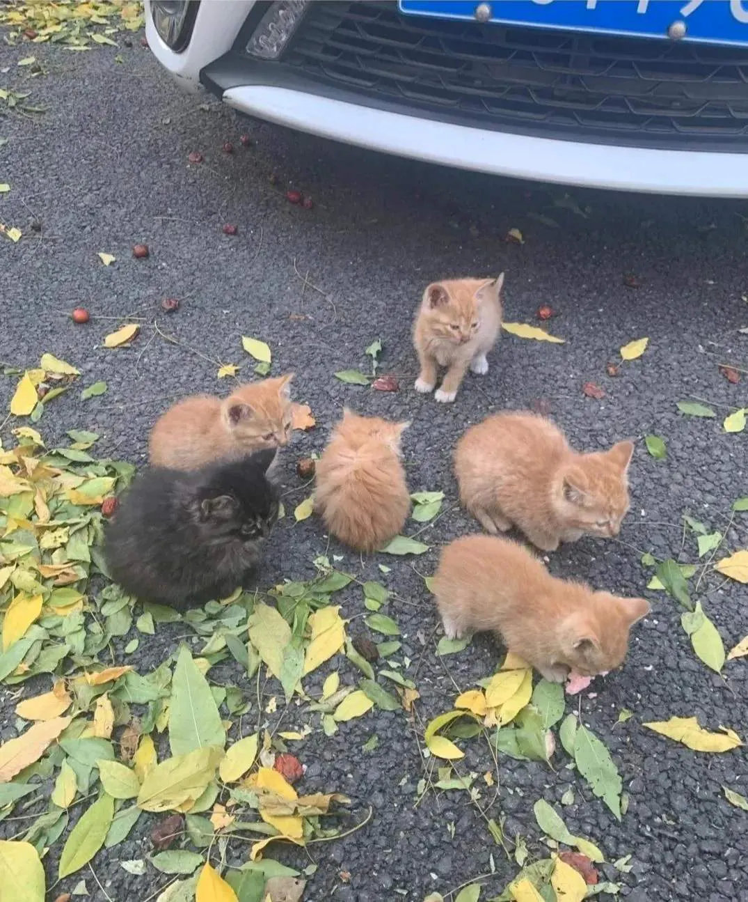 网友:我们小区里的一只母流浪猫咪,生出了5只宝宝,太令人佩服了,一只猫在外面流浪还领着五只孩子。愿今年冬天他们能吃饱住暖。