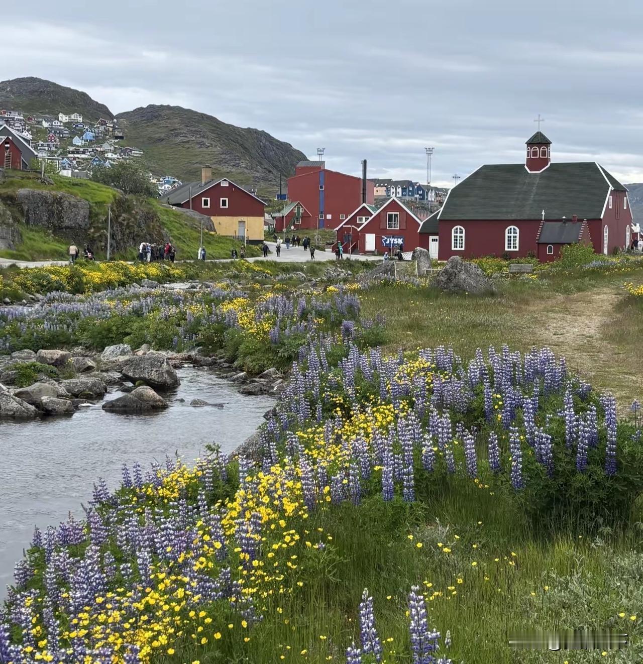 格陵兰岛有花、有草有树木,还有高楼,就是树长不高,高的也比灌木高不多少,照片儿是