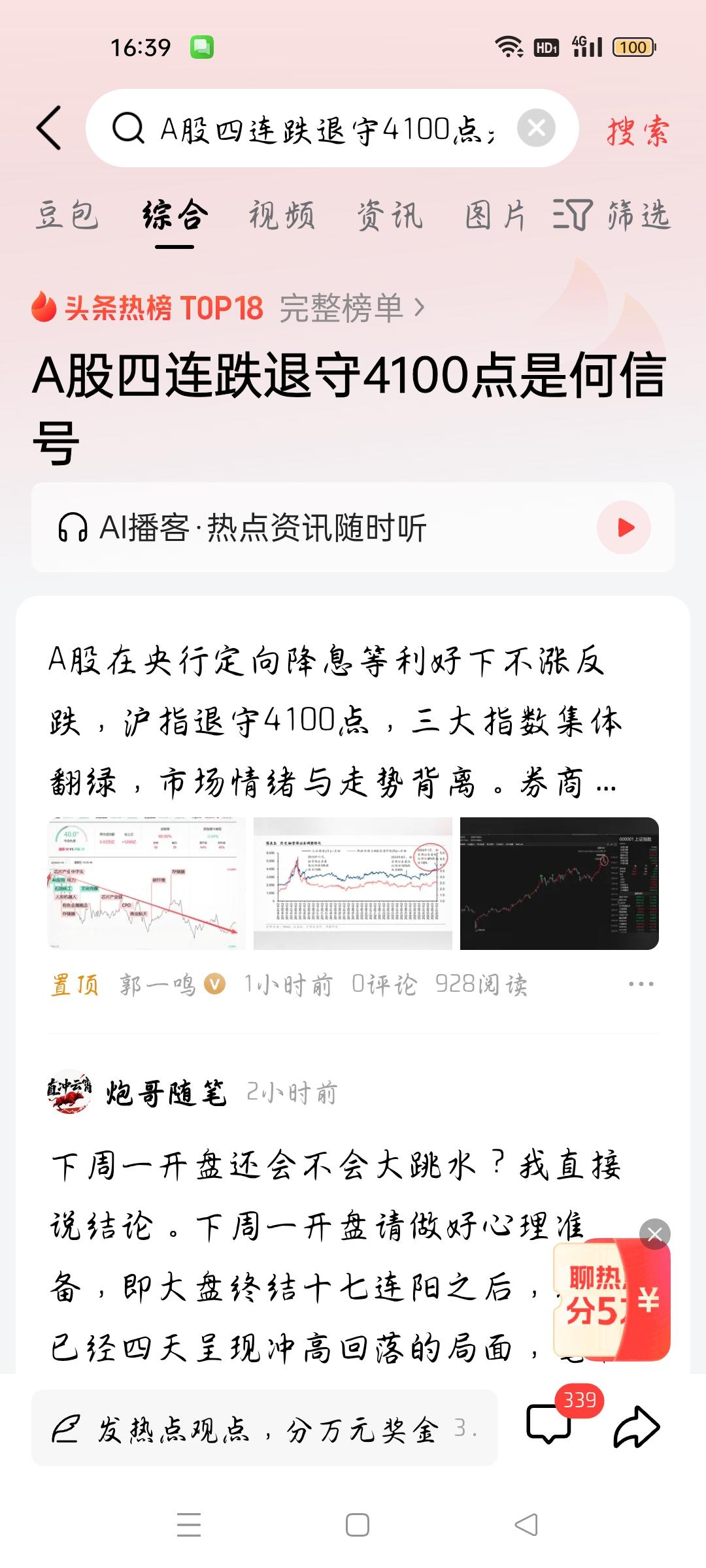 A股四连跌退守4100点是何信号? 据郭一鸣报道,A股在央行定向降息等利好下不涨反跌,沪指退守4100点,三大指数集体翻绿,市场情绪与走势背离,那么A股四连跌退守4100点是何信号?个人认为,股市就有涨有跌,有人统计了有十七阳,现在四连跌退守4100点,个人认为,是前期涨得太多了,一些获利盘获利了结。还有证券会发布公告,股市不能大起大落,前面一直涨,肯定会调整。所以广大投资者,要学会沉住气,分析市场,不要盲目追高。各位条友觉得呢?