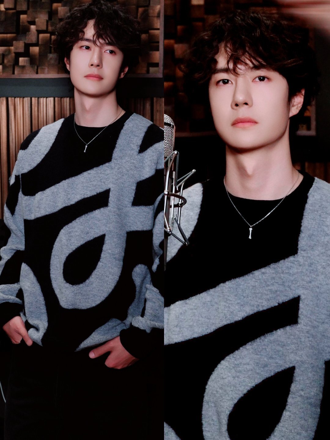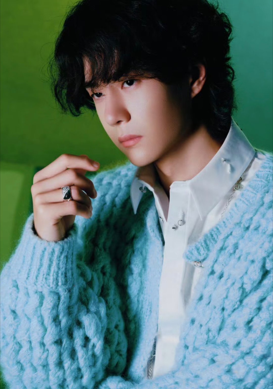王一博灰黑毛衣小卷毛王一博穿什么毛衣都好看💚王一博