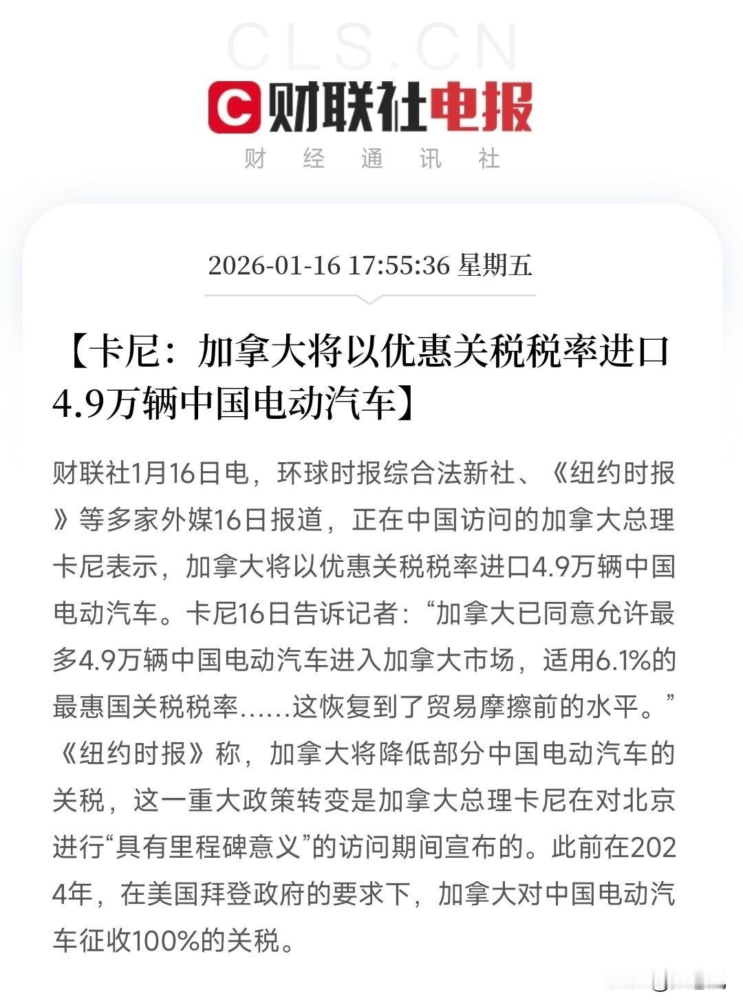 加拿大同意以6.1%的关税进口4.9万辆中国电动车。 不知道比亚迪能分到多少配额啊? 可惜在加拿大没什么布局。 能卖个一万台利润也是不错的。 后续不知道如何合作[呲牙][祈祷][微笑]