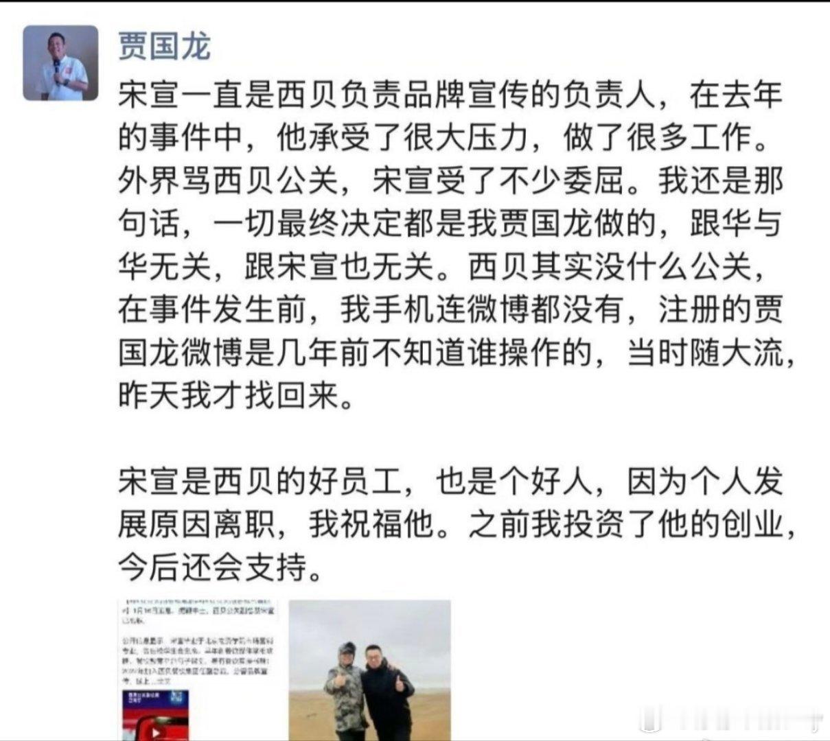 贾国龙今晚10点全面回应我认为罗永浩应该道歉。说实话,贾之前的应对措施作为公司一把手确实不是很合适。贾是谁,我之前也不认识,这次事件后才知道他是西贝一把手,西贝很多年前经常吃,后来涨价了,已经几年没吃过了。回归事实,从郭嘉对预制菜的定义上,西贝确实不是预制菜。罗永浩作为大V,在日常消费中遇到不合理不满意,我认为他应该以消费者的身份去投诉沟通,而不是在没搞清楚各种事实和定义前,用网络大v身份公开引导舆论。西贝关闭多少门店或者是否倒闭,对他影响不大,对我们看热闹的也没影响,但是上万员工怎么办?西贝没有用预制菜,因为这次舆论关闭上百家门店,这些员工活该吗?他们的工作和生活谁来负责?网络大v在网络上有得天独厚的优势,他们会把握舆论导向,但是他们没有办法解决就业问题,他们逞一时口快,却让企业蒙受损失,合理吗?临近年关,西贝的上万员工,祝福他们早日找到工作,不要影响生活!贾国龙让罗永浩道歉赔偿西贝