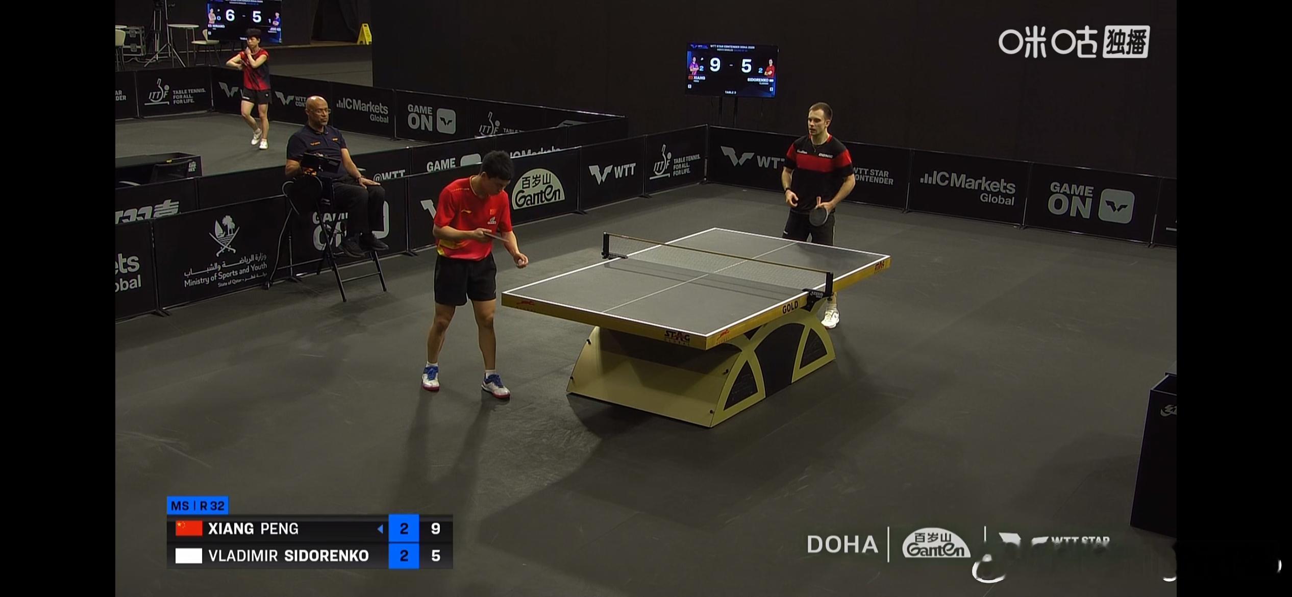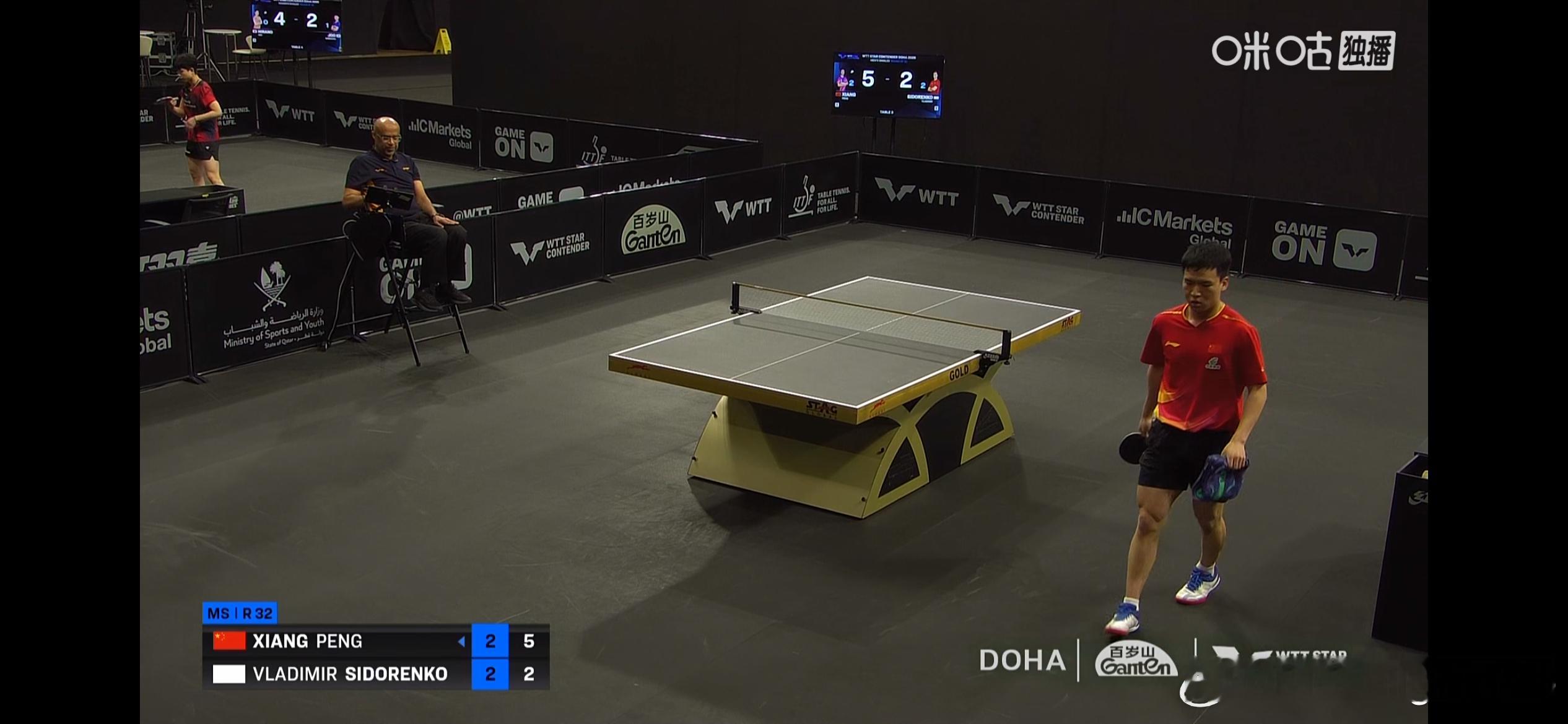 WTT球星挑战赛多哈站2026 男单1/16决赛:🇨🇳向鹏3比2弗拉基米尔·西多伦科(AIN)(11-6,5-11,7-11,11-9,11-8)