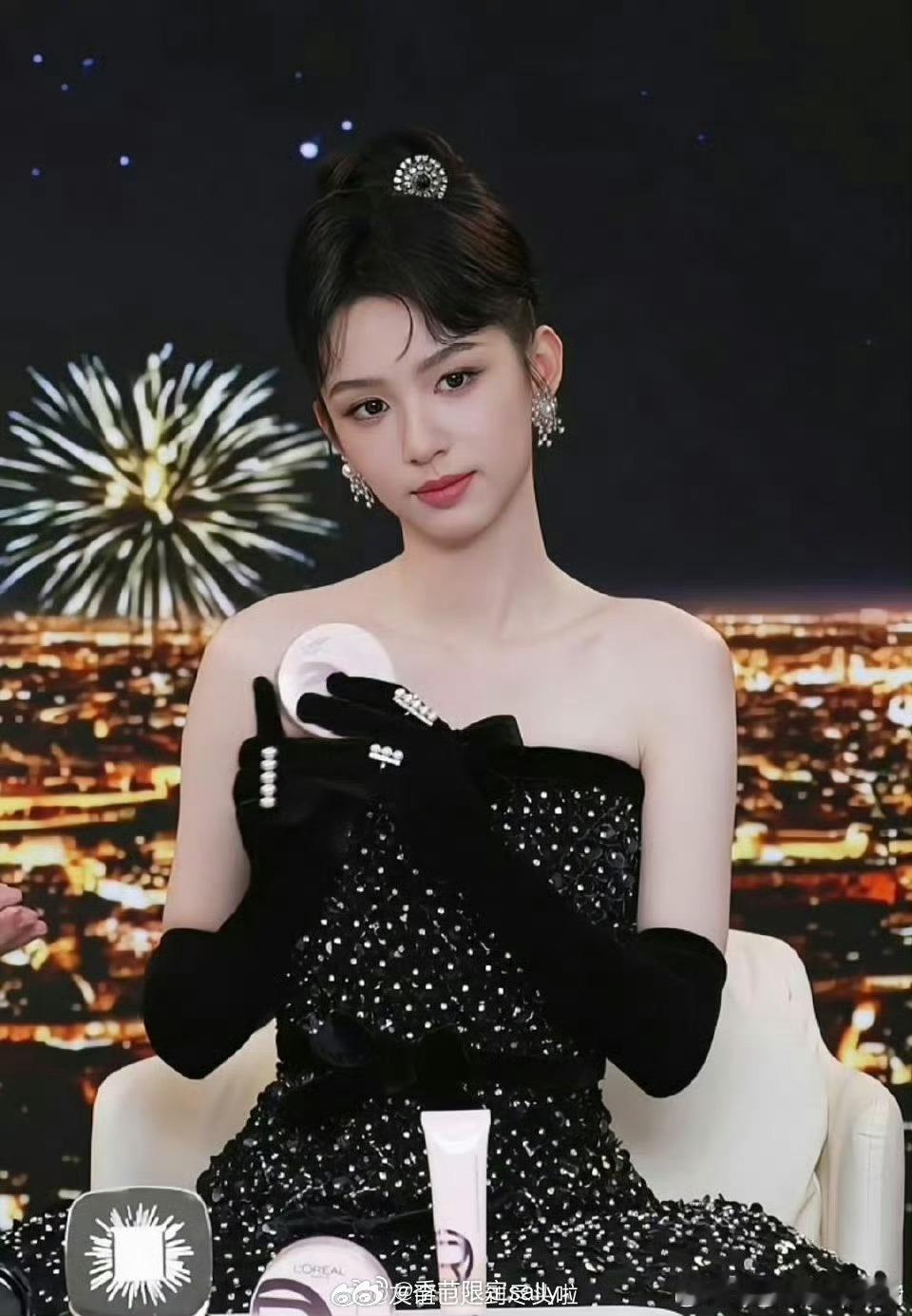 今晚路人镜头下的刘浩存生图状态,蓝色眼影也好适配