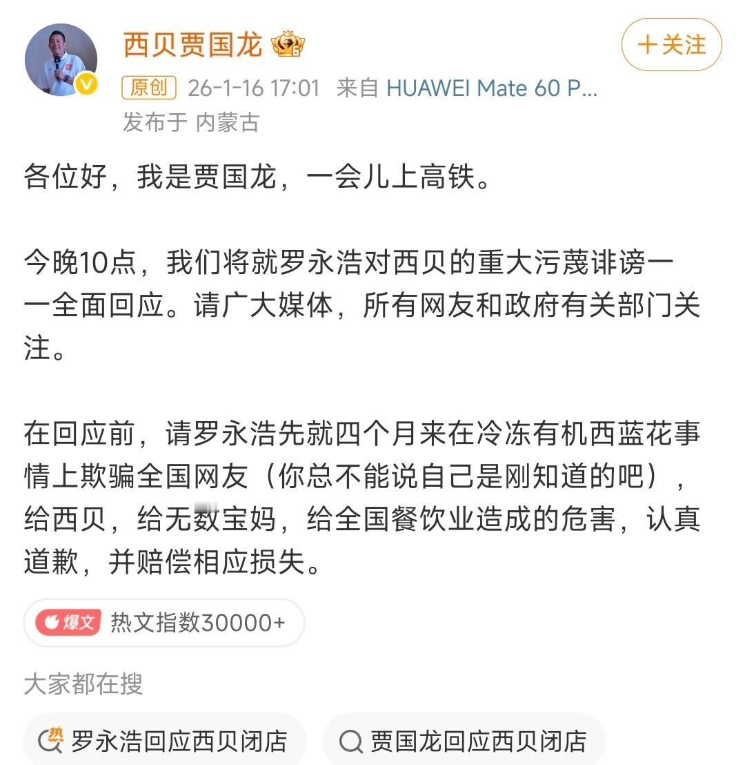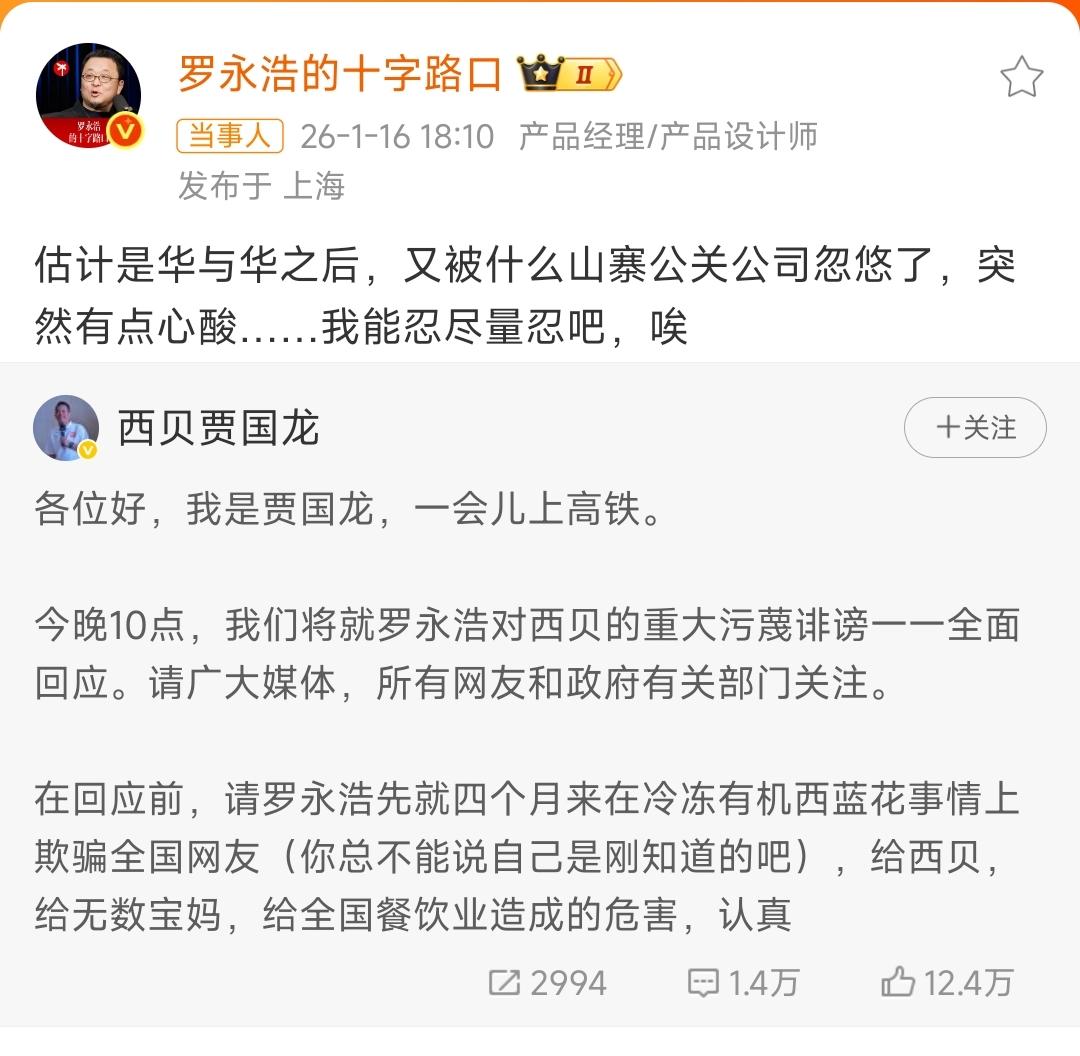 在他看来,明明西贝实打实做食材,冷冻西兰花是为了锁鲜保鲜,成本比鲜菜还高,结果被罗永浩一句“全是预制菜”带偏节奏,平白遭了四个月的污蔑。 去年9月罗永浩随口吐槽,压根没弄清“中央厨房备菜”和“劣质料理包”的区别,就给西贝扣上“预制菜卖高价”的帽子。 可西贝的定价真不冤:食材都是精挑细选,从不掺假,员工待遇也从没克扣,这些实打实的成本难道不该算进去? 结果呢?就因为这几句不实言论,西贝闭店那么多家,亏损超亿,员工跟着遭罪,连一直信任西贝的宝妈们都被误导,以为自己吃了“劣质预制菜”。 贾国龙忍了四个月,现在终于坐不住了。 我估计现在大腿他都拍肿了,当时自己就应该硬刚来着。 何至于等到快过年呢