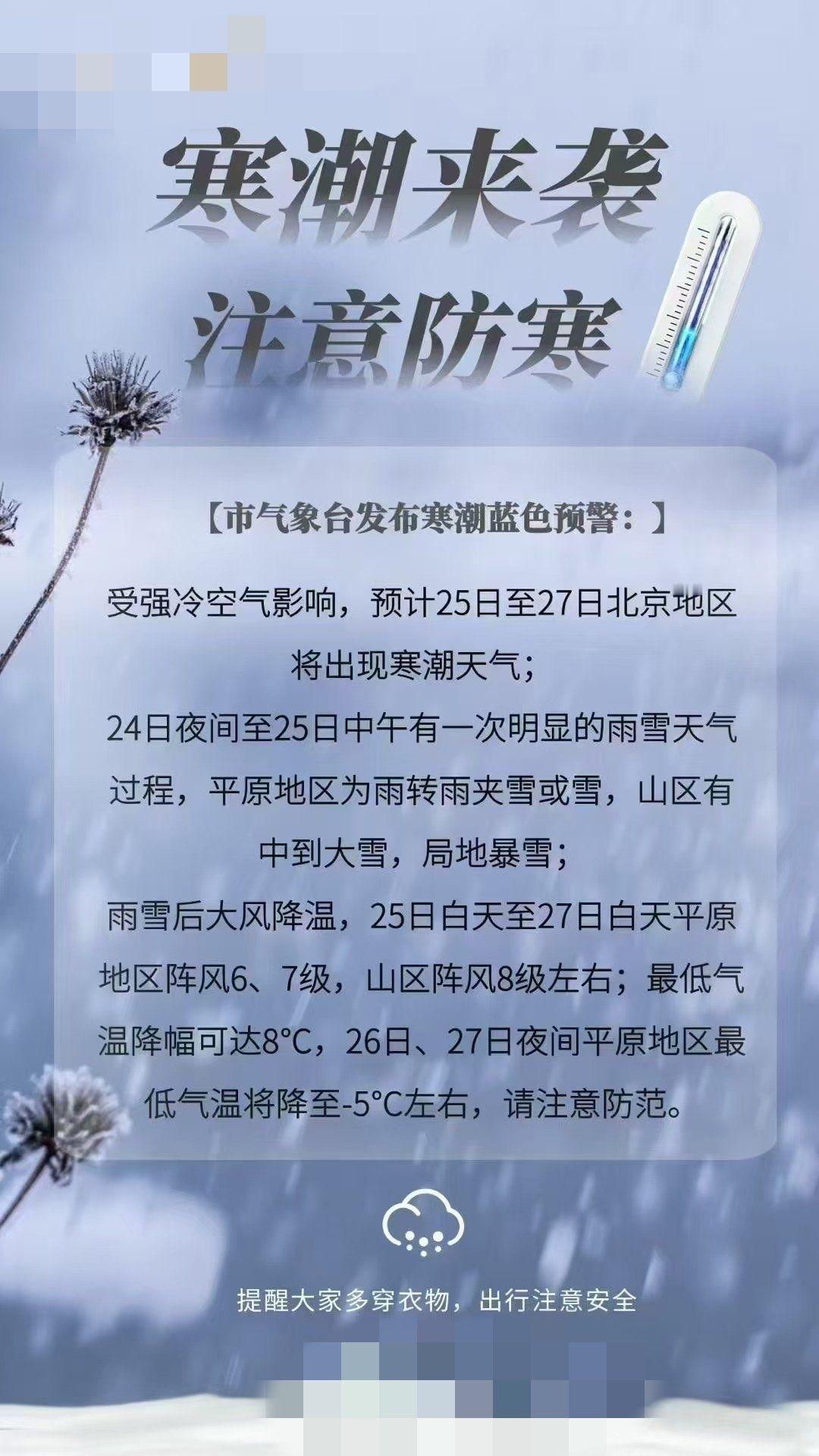 今年首场寒潮杀到!降温12℃+冻雨暴雪,南北方抗寒大战已打响 刚把秋裤收进衣柜,就被天气预报泼了盆冷水?没错,2026年首场“速冻级”寒潮已发货,1月17日起正式横扫全国.中东部气温直接“跳崖”6-10℃,局部降温超12℃,21日最低气温0℃线更是要南压到贵州至南岭一带,南方朋友的“魔法攻击”防御战又双叒叕要开始了! 这场寒潮堪称“全能型选手”:北方有暴雪围城,陕西、山西、河南等多地将迎中到大雪,部分地区暴雪预警已上线,出门秒变“雪中人”;南方更惨,不仅要扛住湿冷暴击,河南西部、湖北西部、贵州等地还会遭遇冻雨,电线结冰、路面打滑,出门堪比“走冰场”,连北方人看了都要倒吸一口凉气。最扎心的是广东网友,前几天还在穿短袖,如今要直面3℃低温+90%高湿度,体感温度直逼0℃,外国博主都崩溃大喊“广东的冷是魔法攻击,我要回北欧”,裹着羽绒服抱着热水袋还瑟瑟发抖。 但寒潮再猛,也抵不过人间暖意。新疆民警顶着严寒,20分钟寻回逃课男孩,还耐心开导家长关注孩子心理健康;小区里,巡逻民警主动帮车主给亏电车辆勾电,冻红的双手撑起出行希望;高速路上,除冰工人连夜作业,在风雪中守护回家路;医院里,医护人员提前备好急救物资,为老人、慢病患者筑牢健康防线。这些在寒风中坚守的身影,让刺骨的寒潮多了几分温度。 当然,保命攻略必须安排到位!老人小孩尽量减少外出,出门务必护住头、胸脚三大重点部位;心脑血管、呼吸道疾病患者要规律服药,定时监测身体指标;南方朋友赶紧把暖宝宝、电热毯、珊瑚绒睡衣三件套备齐,学会“洋葱式穿衣法”灵活加减;北方小伙伴除了防滑还要注意取暖安全,谨防一氧化碳中毒。 这场寒潮是对全国的考验,却也让我们看到:有人在风雪中坚守,有人在冷冬里互助。无论是北方人裹着羽绒服淡定扫雪,还是南方人靠火锅奶茶“续命”,都是对生活的热爱。 你所在的城市降温了吗?是已经开启“速冻模式”,还是在为即将到来的寒冷做准备?评论区聊聊你的抗寒神器和暖心瞬间,一起抱团取暖,打赢这场寒潮保卫战!