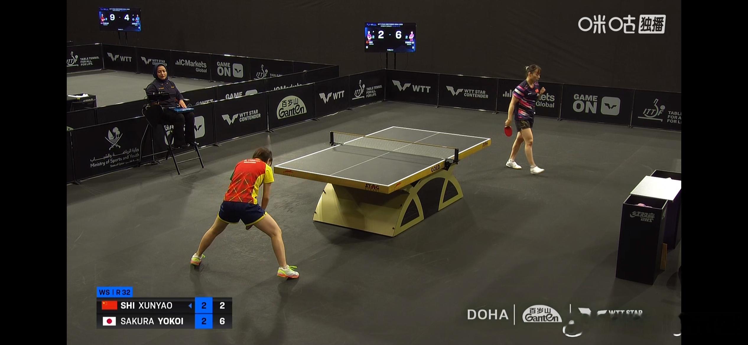 WTT球星挑战赛多哈站2026 女单1/16决赛:🇨🇳石洵瑶2比3横井咲樱🇯🇵(11-6,6-11,4-11,12-10,6-11)