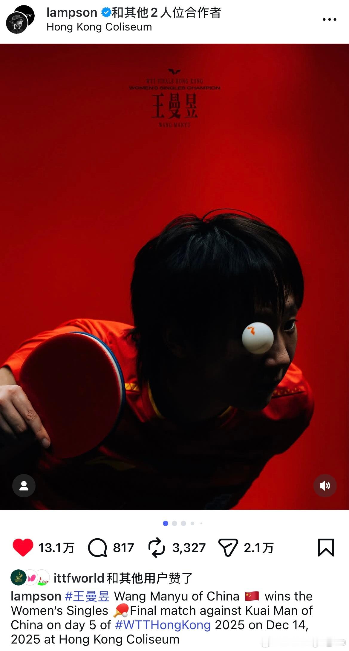 刷到王曼昱这组WTT香港总决赛的图目前在ins已经有13.1万点赞了摄影师📷Lampson.Y评论:How did they make pingpong look so fucking intenseThird poster be like "God Help Us"Chinese and the ping pong have spirituality between themSupreme Manyuall of these could be movie posters, amazing work