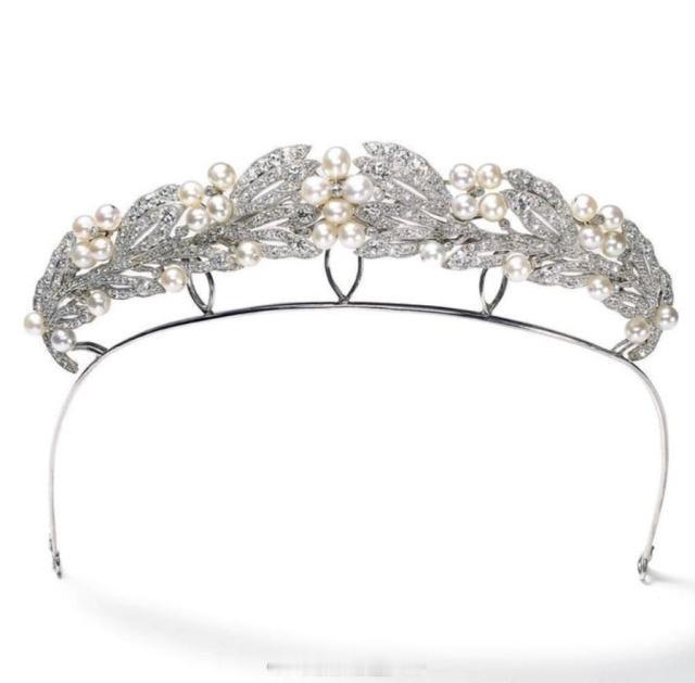 介绍一顶卡地亚的珍珠钻石王冠 它曾属于希腊王妃玛丽·波拿巴,波拿巴是拿破仑的姓氏,玛丽为拿破仑小弟的后裔,娘家非常有钱,这大概率是她随手买来玩的? 因为有钱,玛丽手上有更大的珠宝,这顶没见她公开戴过。可见在一些宴会曾被她闺女尤金妮和外孙女塔蒂阿娜借戴过。若干年后,它大概率被传到塔蒂阿娜某个儿子手上并在1999年卖掉。当时很大概率被卡地亚回购了,我前两年在展览上看过,特别窄和小,甚至都对不上焦= =