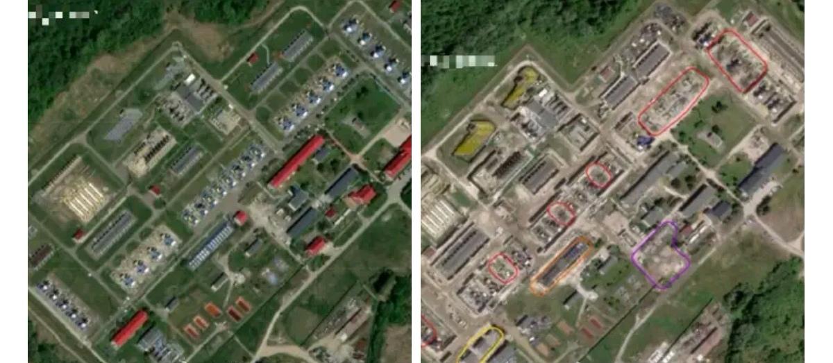 老俄MOD之前的公报说,8日晚榛子“导弹打击了利沃夫航空修理厂及机场。 公报提及仅此而已,再无其他。于是,世界各地包括俄官媒,纷纷定调,挨”榛子“砸的只是利沃夫的航空修理厂。 但是,老俄某黑客组织表示不服! 以下是他们今天的”不装了” 2026 年1月16日发布: 利沃夫州天然气设施遇袭后果。 我们的团队获取到了利沃夫州斯特雷区天然气设施的半独家高分辨率图像,此前我们曾发布过使用哨兵卫星服务信息的相关帖子。现在可以更准确地查看这些袭击造成的后果。 其中一次袭击的补充材料已添加到相关帖子下的评论中。值得注意的是,2023 年该地区的天然气设施曾被用网覆盖 / 进行了遮蔽处理,但这对设备并没有起到太大帮助。 现将 “比尔切 - 沃利察” 天然气压缩站的遇袭后果说明如下: (颜色标注说明) 🔴 13 台天然气输送机组。已被摧毁。 其余机组遭到不同程度的损坏。 🟠 天然气压缩机组设备。已受损。 🟡 用途不明的建筑。严重受损。 🟢 用途不明的建筑。已受损。 🟣 通道建筑和一座用途不明的建筑。已被摧毁。