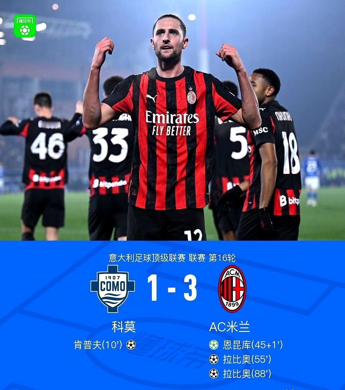 榜首只领先3分 国米46分半程冠军,靠稳拿弱队续命。 昨晚1比0莱切,20岁青训小将补射绝杀,连续8轮不败。 米兰少赛一场差3分,客场3比1翻盘科莫,拉比奥特2球1造点。 那不勒斯三连平掉到6分,主场0比0帕尔马,麦克托米奈进球被吹。 三队差3分3分6分,像台阶。 半程冠军最后翻车不是没发生过,去年勒沃库森就是例子。 你更看好谁?