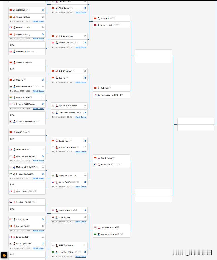 WTT多哈球星挑战赛男单16强全部产生了,国乒有6名队员顺利晋级,日本只有两人晋级。 在今天的1/16决赛中,陈垣宇2:3输给了队友薛飞。黄友政在0:2落后的情况下连扳三局,击败了日本选手户上隼辅。陈俊菘2:3输给了丹麦名将林德。温瑞博3:0击败林昀儒。梁靖崑输给了周启豪。向鹏战胜了西德科,林诗栋击败朴康贤。 接下来的1/8决赛有一场焦点之战,那就是薛飞对阵张本智和。另外林诗栋将对阵奥恰洛夫,周启豪迎战筱冢大登,黄友政挑战郭冠宏,温瑞博的对手是林德,向鹏对阵西蒙高茨。 从这几组对阵来看,国乒大概率将会有3到4人能够晋级到8强,而这其中林诗栋、向鹏和黄友政最有希望。国乒多哈名单 国乒多哈