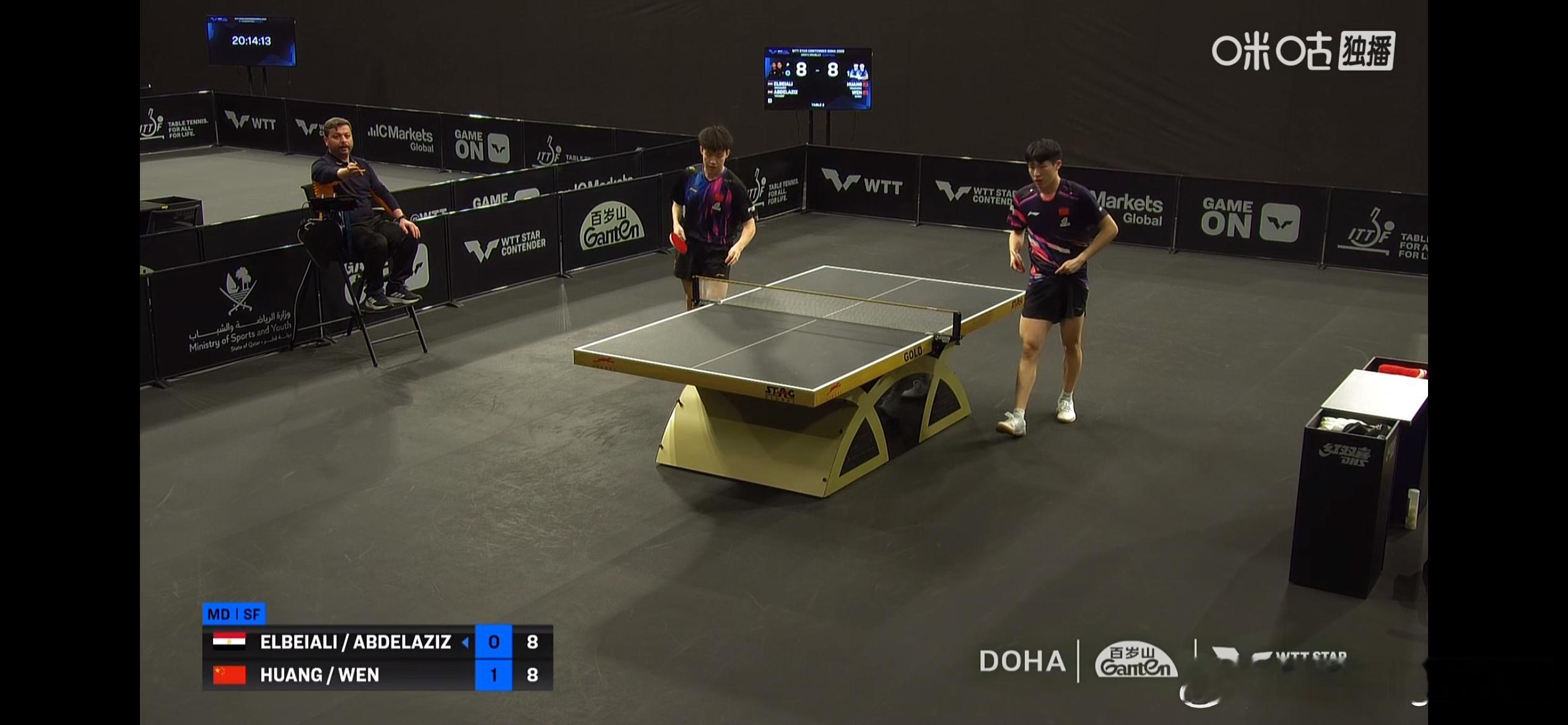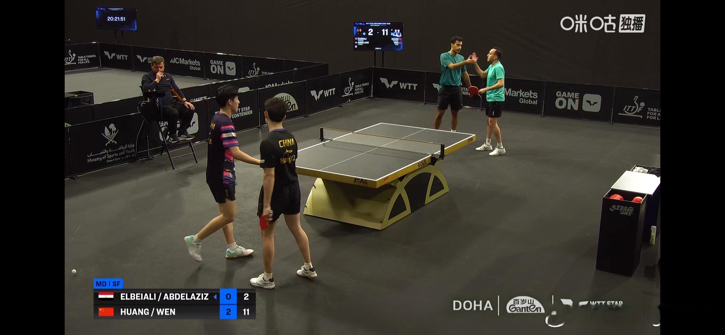 WTT球星挑战赛多哈站2026 男双半决赛:🇨🇳黄友政/温瑞博3比0埃尔贝亚利/阿卜杜拉齐兹🇪🇬(12-10,11-9,11-2)决赛:🇨🇳黄友政/温瑞博🆚张禹珍/赵大成🇰🇷