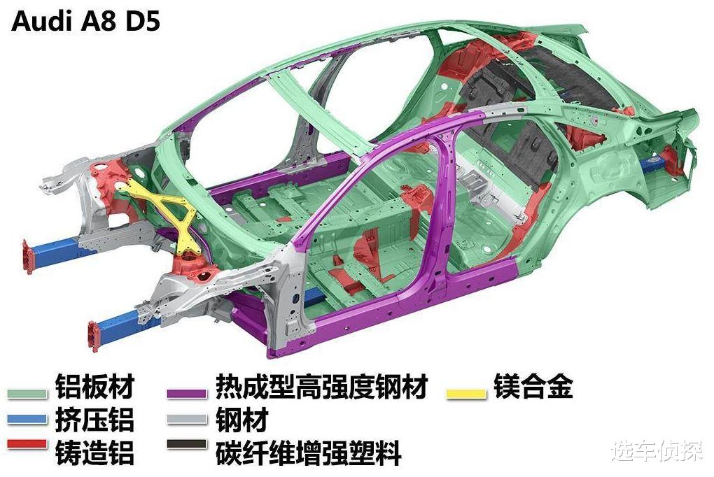 在量产车领域,使用激光焊接技术可以把车身焊得密密麻麻,比如奥迪的激光焊接强度比传统焊接高30%,其锐棱技术虽然增加了成本,模具加工时多花一倍功夫,但车身钢板严丝合缝,刚性更强。对于车架的A柱和B柱来说,至少需要使用1500Mpa的热成型钢,才能保护车架的完整。