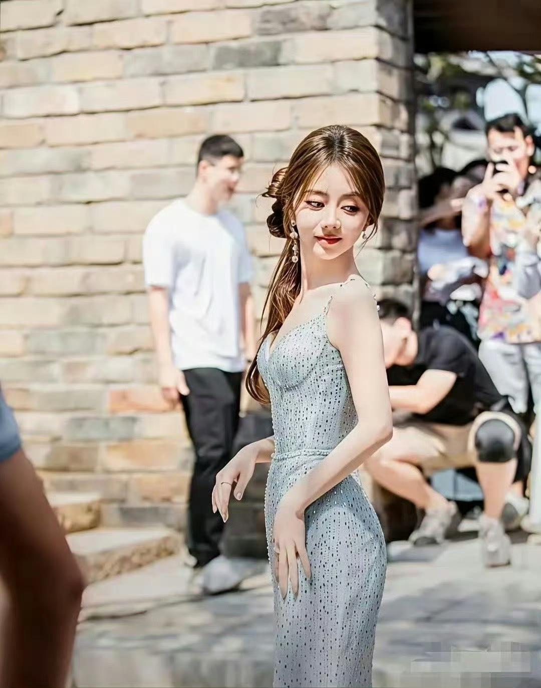 谭松韵这组街拍直接美到我失语! 碎钻吊带裙勾勒出盈盈一握的细腰, 阳光下整个人都在发光, 甜妹变辣妹只需要一条裙子的距离, 姐姐多拍点这种造型吧!