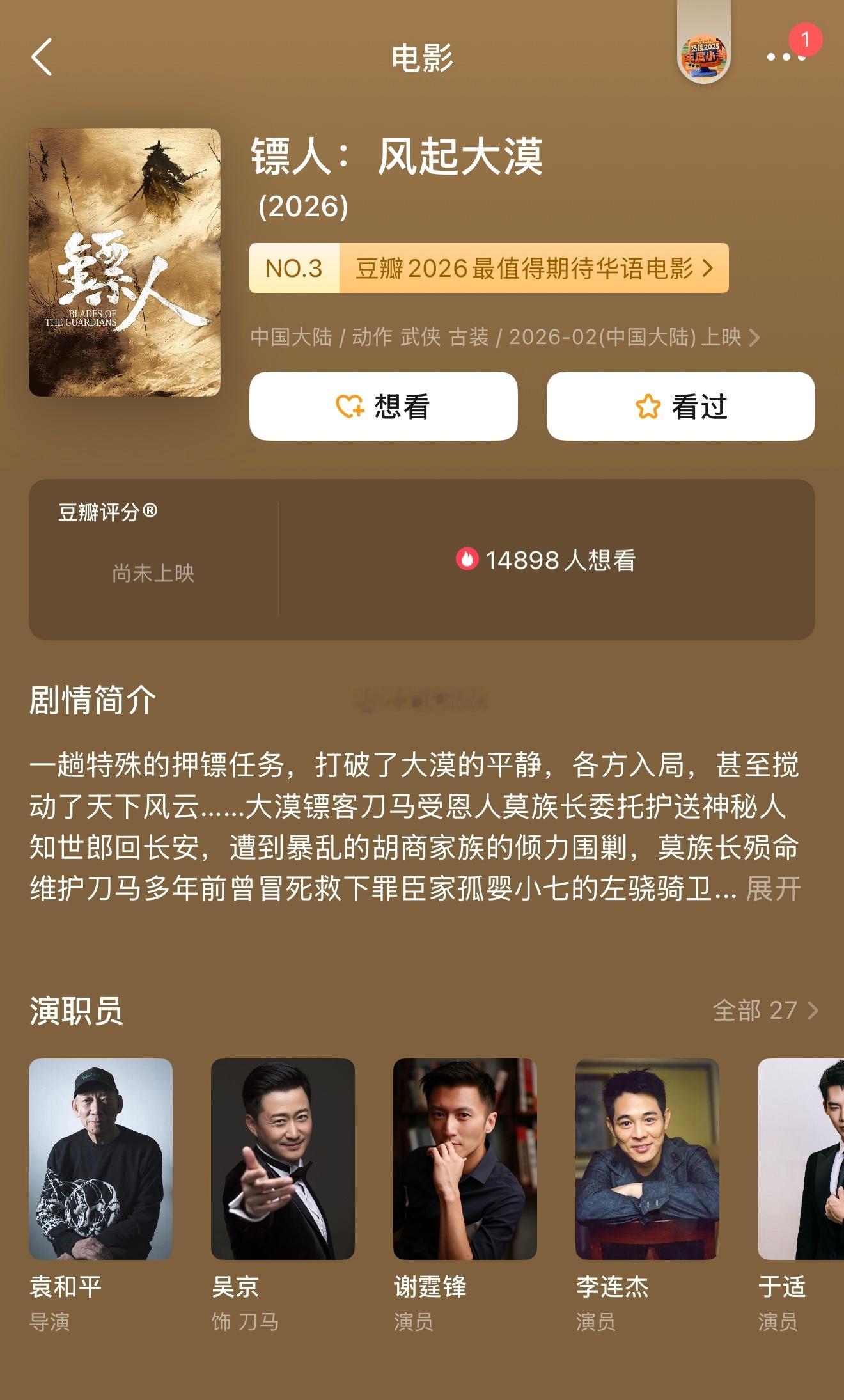 吴京最新电影《镖人:风起大漠》2月上映,你会去看吗?
