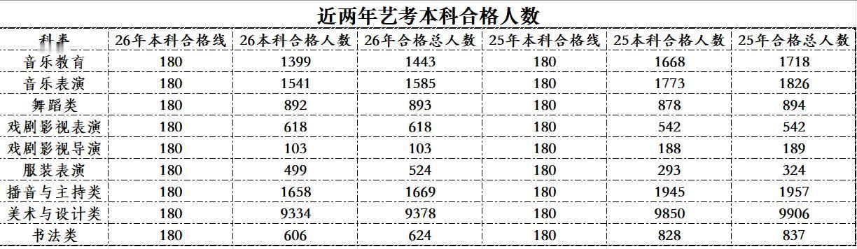现在的艺考很“易考”,现在的艺考也不易考! 近段时间,是各地艺考合格线密集发布的时间段,陕西于16日也发布了2026年统考合格分数线。纵观各地的分数线,有两个事实不容忽视! 一、现在的艺考很“易考”。这是相对艺术类本科合格线而言的,只要参加艺考,至少95%以上都能拿到本科合格线以上的分数。 二、现在的艺考也不易考。这是相对于录取而言的,上了本科合格线,并不等于保底本科,还要看考生的文化成绩,因为文化成绩与艺考成绩同等重要;想要上一所优质本科,不仅要有很高的专业成绩,而且还要有很不错的文化分数。 近些年,艺考已回归本源,报考人数已趋于稳定,这主要归因于文化成绩去除了部分想借专业上岸的学生。