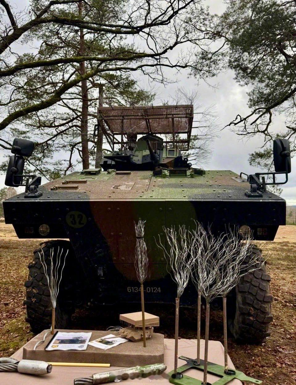 烽火问鼎计划每天认识一件兵器 法国正在试验使用展开的钢丝丛(以前在俄罗斯坦克上见过)来抵御FPV的远程攻击。俄乌冲突实战显示,该装置虽然笨重,但能显著提高抵御 自杀FPV 攻击的生存能力。