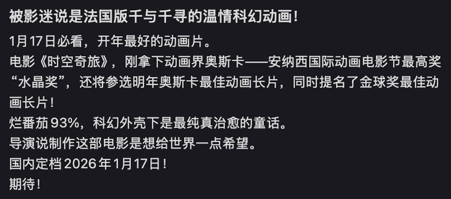 电影时空奇旅今日上映时空奇旅 法国版千与千寻 入围奥斯卡最佳动画长片短名单的实力佳作。它用天马行空的想象力告诉你:明天或许不会更好,但后天,也许会。一份献给所有观众的希望之礼。