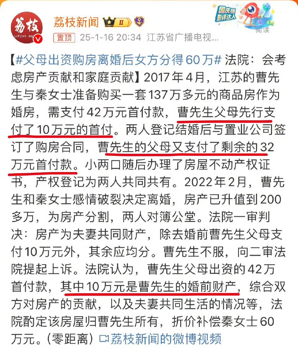 父母出资购房离婚后女方分得60万这个事情和法院无关,要怪就怪男方把女方名字登机在房产证上,按照法律规定这的确是夫妻共同财产,房子价值200万,如果平分的话,女方应该获得100万。法院考虑男方父母首付42万,扣除首付,房子剩余价值160万,如果平分的话,女方应该获得80万,法院稍微照顾了一下男方,只是让女方获得了60万。这个事情,女方结婚前要求名字登机在房产证上就是为了以后离婚可以分房产,这都不是阴谋,都属于阳谋了,男方明知是阳谋,还愿意配合,要怪就怪自己吧。